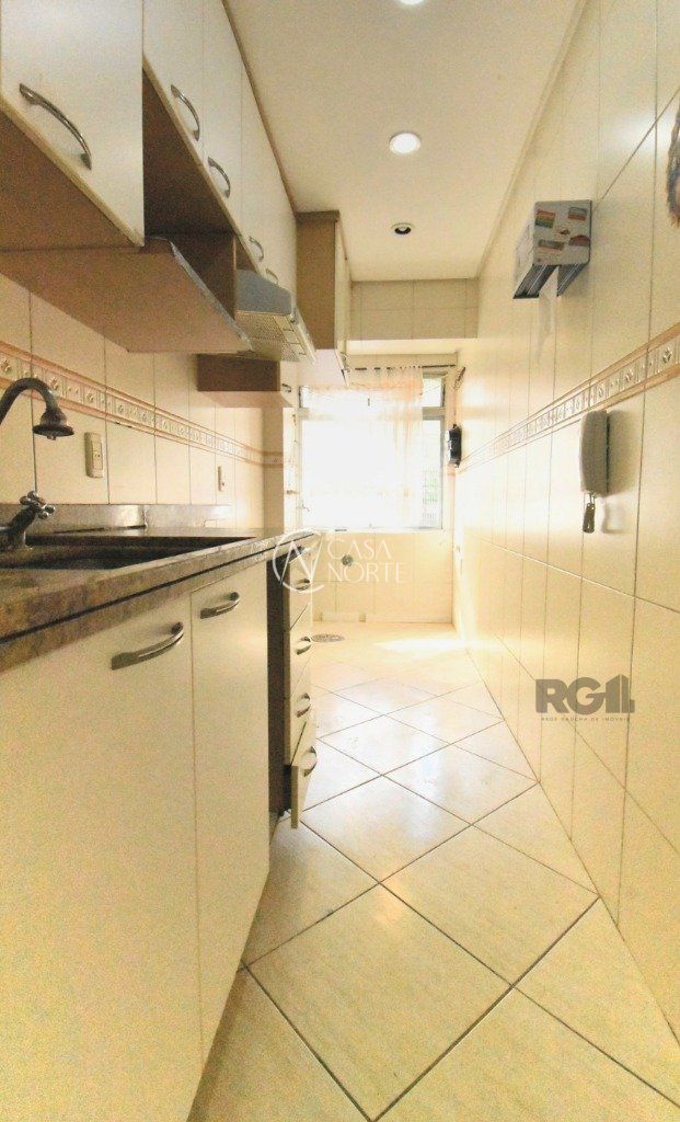 APARTAMENTO DE 2 DORMITÓRIOS - Imóvel com 52 m2, living, sacada aberta, 2 dormitórios, circulação, banheiro com balcão, ventilação direta e box de vidro temperado, cozinha mobiliada, com área de serviço integrada, piso frio, frente, primeiro andar (pavimento 2), possui elevador, sol manhã e tarde, prédio recuado, silêncioso. Localizado nas imediações da Rua Duque de Caxias, Rua Washington Luiz.