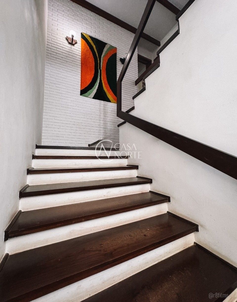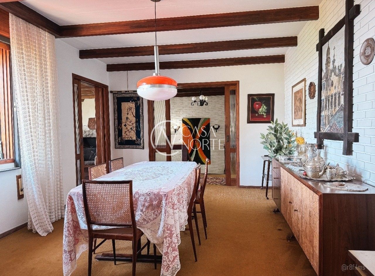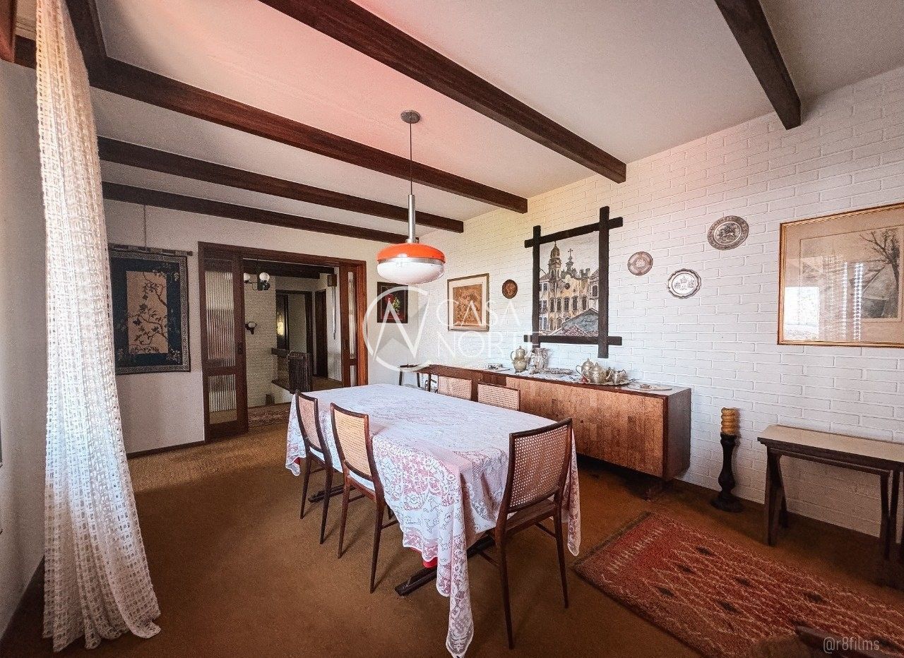 No segundo andar: 03 dormitórios, sendo 01 suíte, living para 03 ambientes com uma bela sacada com vista do Rio Guaíba, lavabo, lareira, sala de jantar, cozinha, área de serviço e depósito.