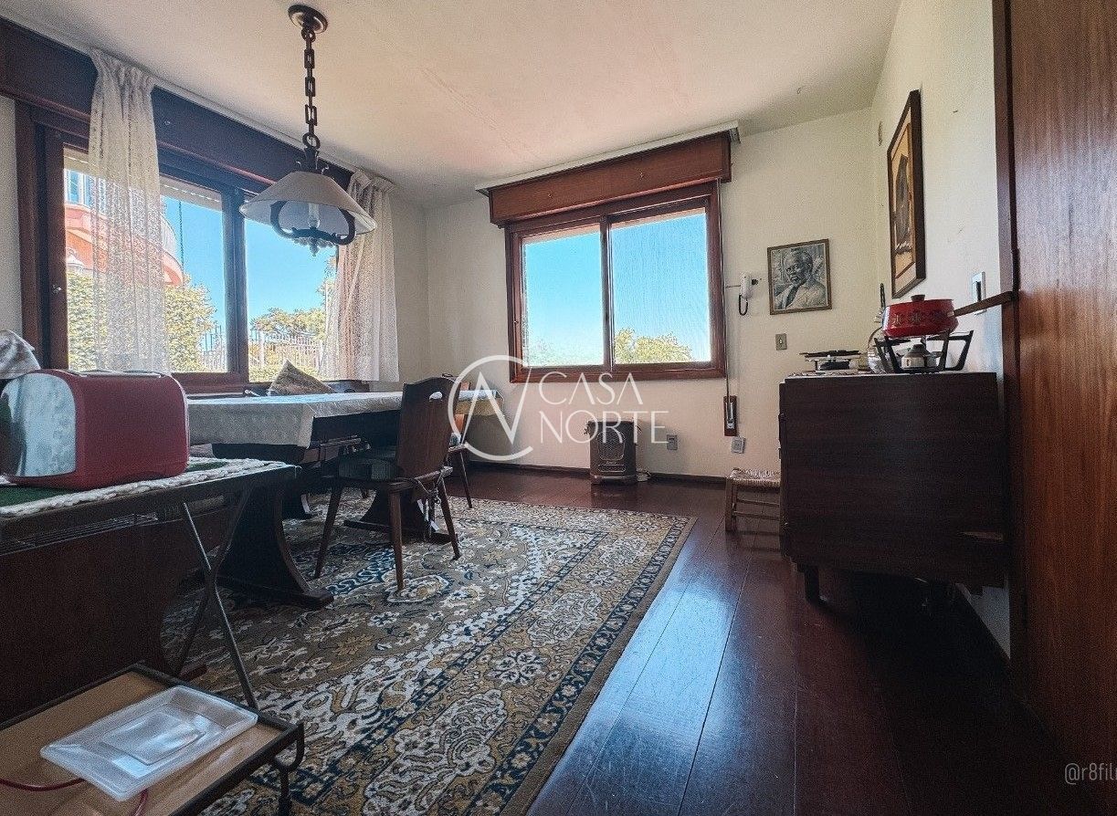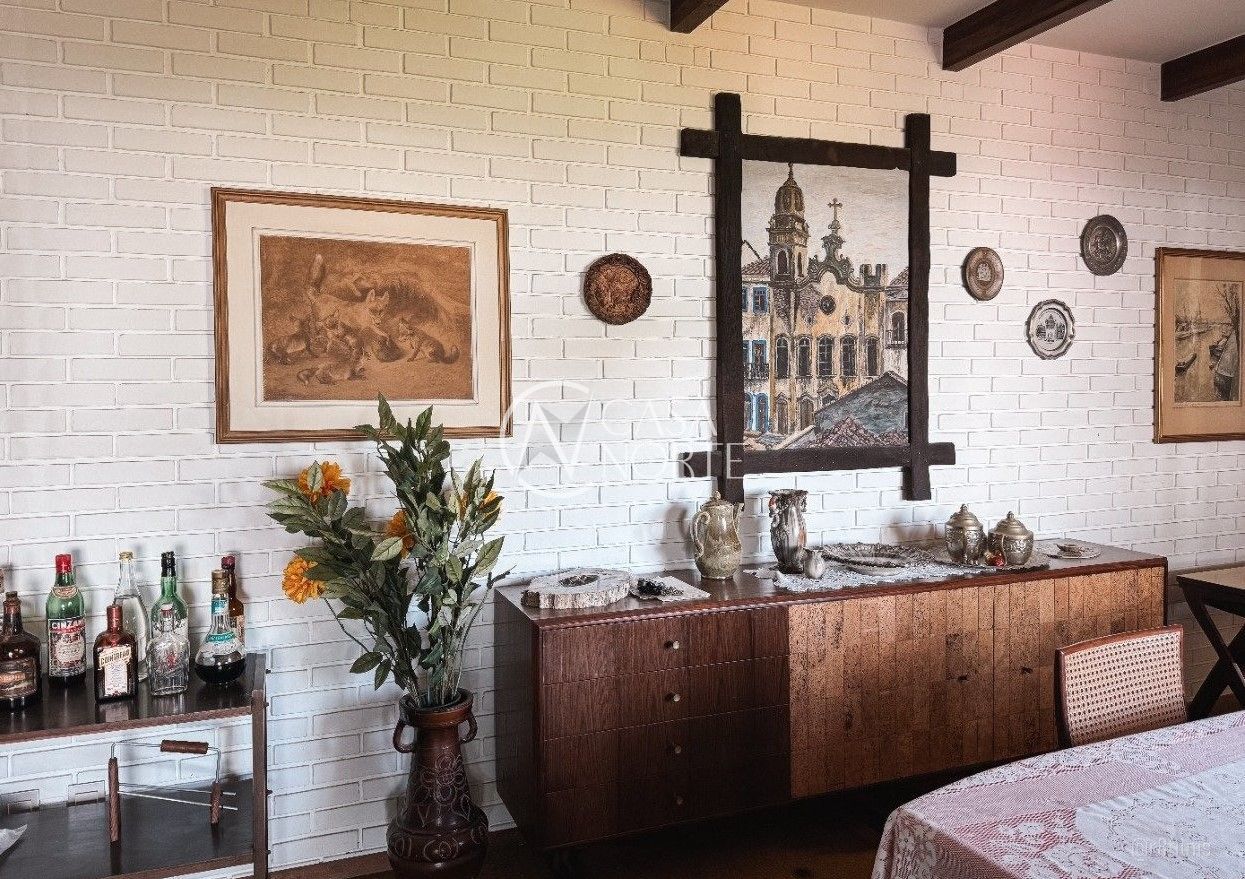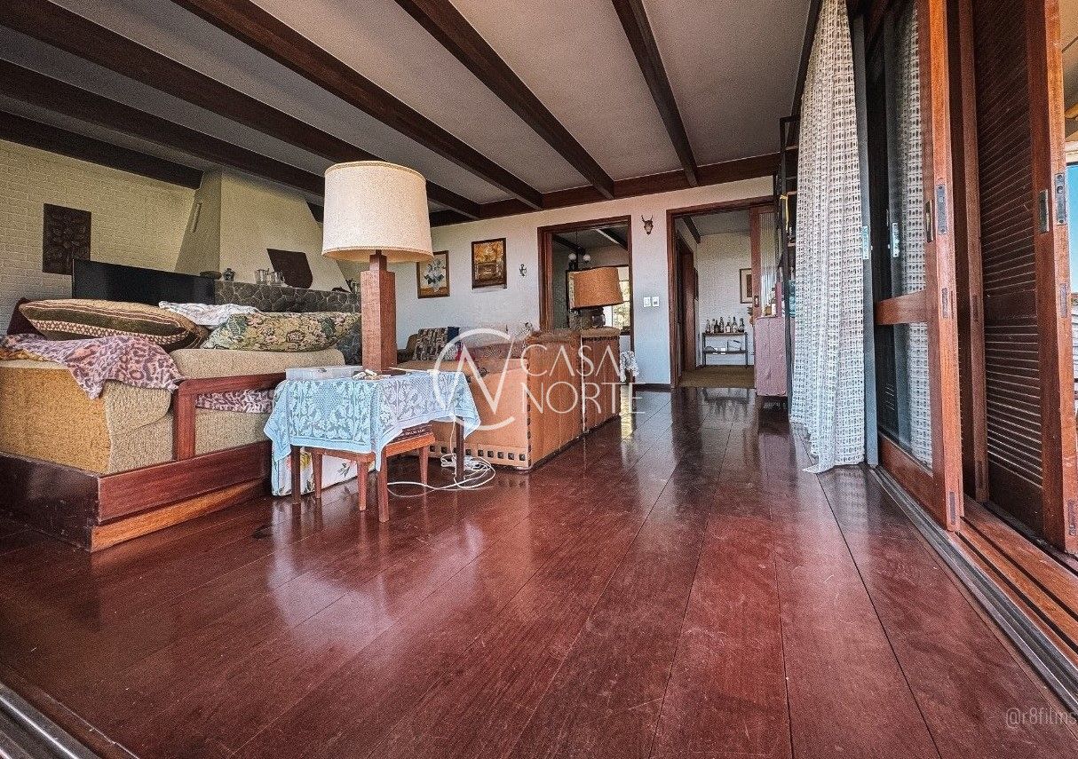 No segundo andar: 03 dormitórios, sendo 01 suíte, living para 03 ambientes com uma bela sacada com vista do Rio Guaíba, lavabo, lareira, sala de jantar, cozinha, área de serviço e depósito.
