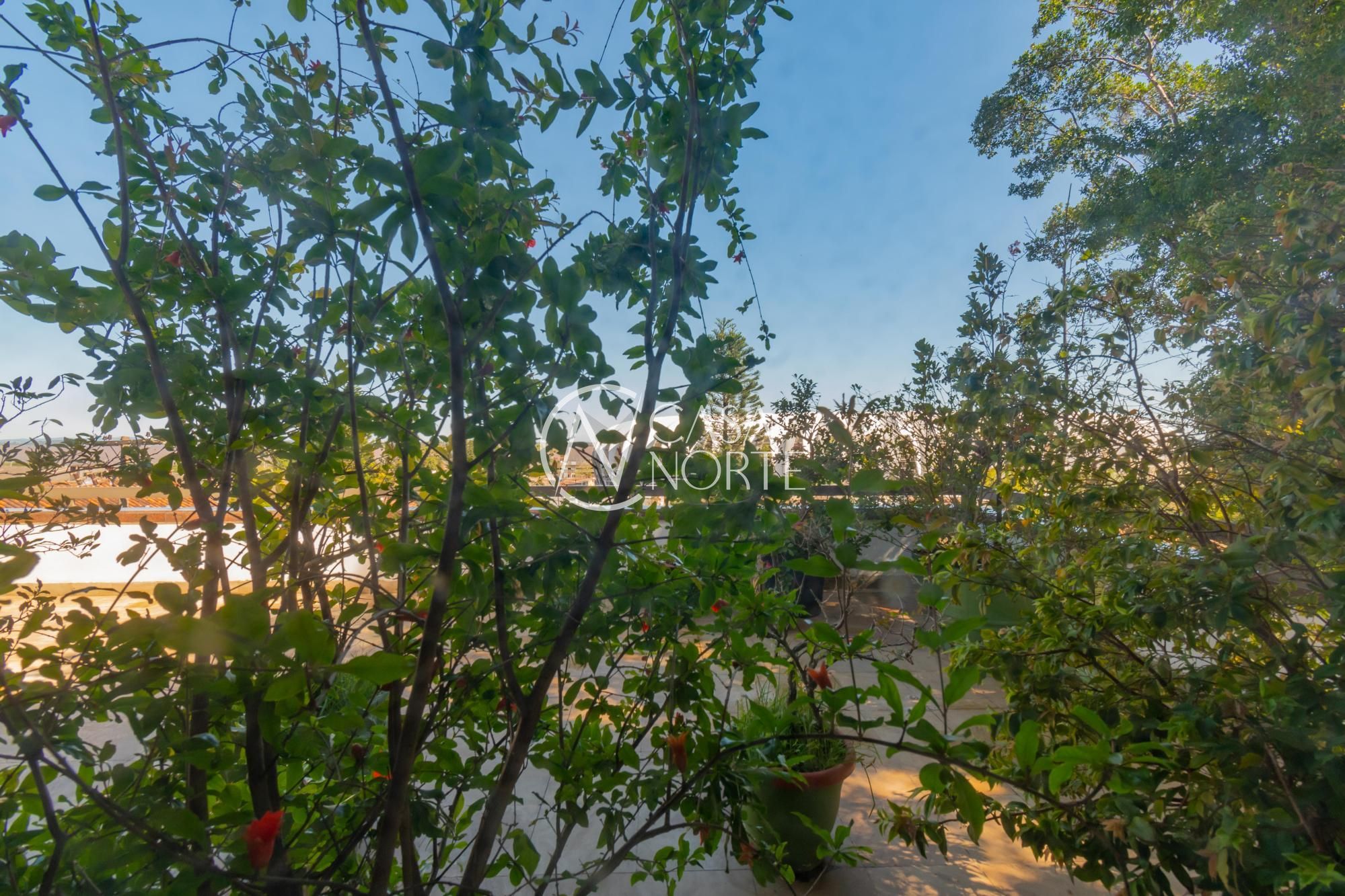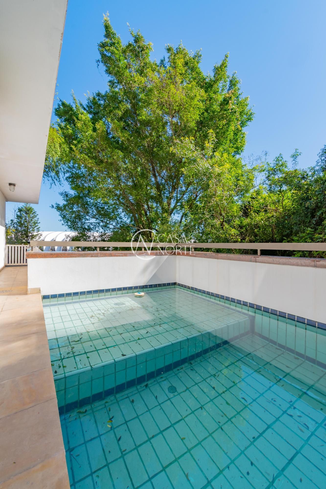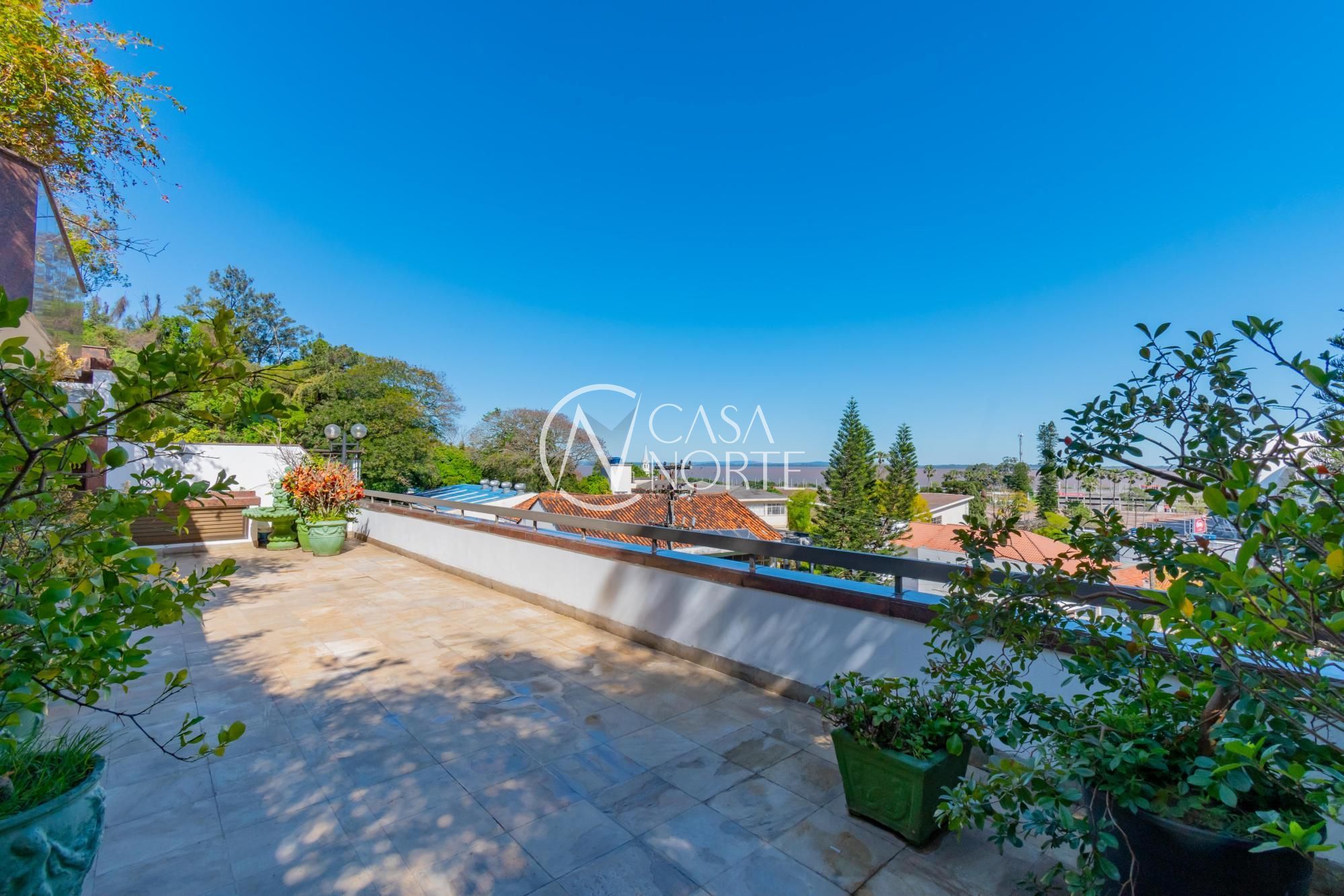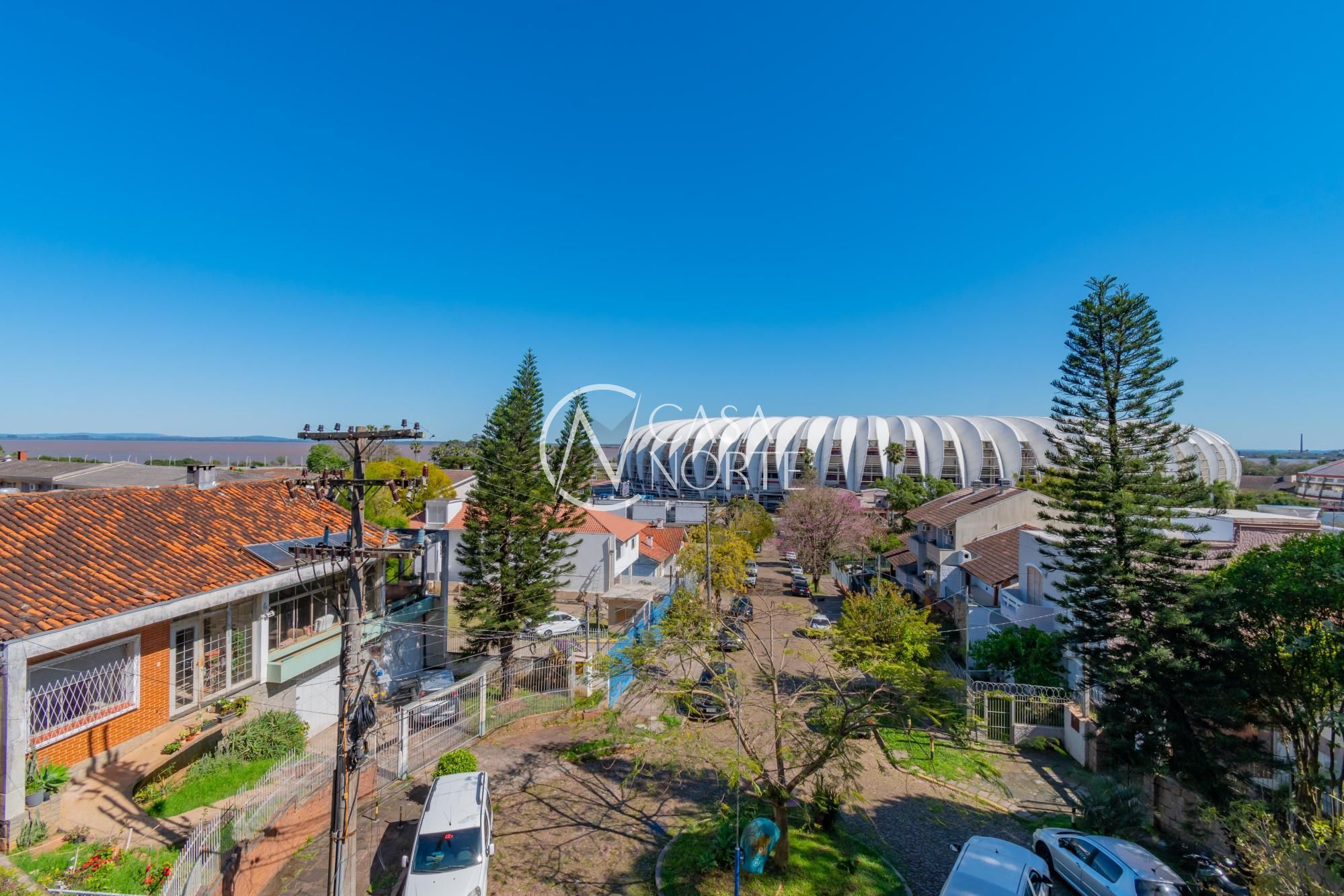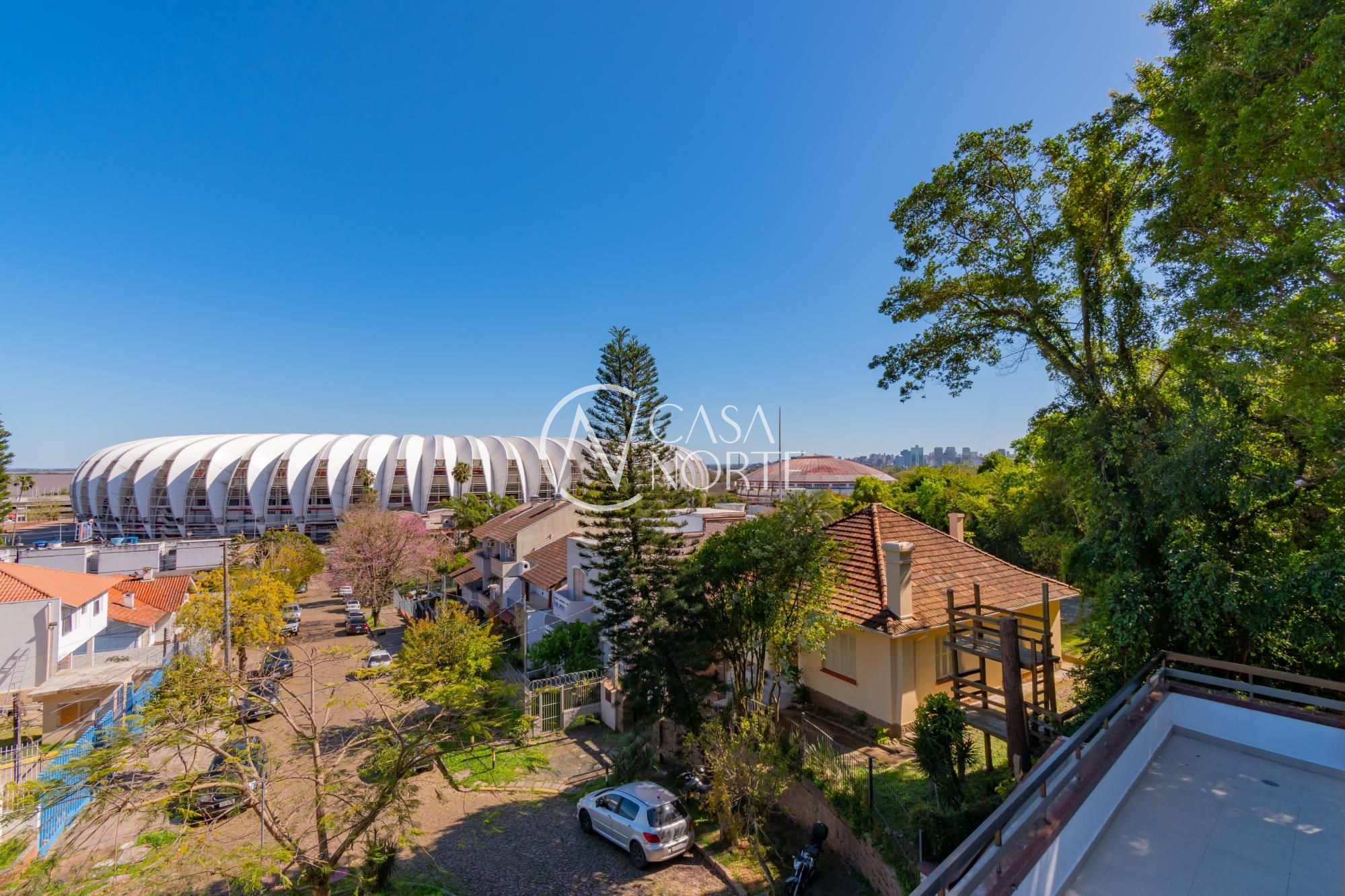 Um terraço de 80m², com piscina e vista para o Estádio Beira Rio e rio Guaíba.