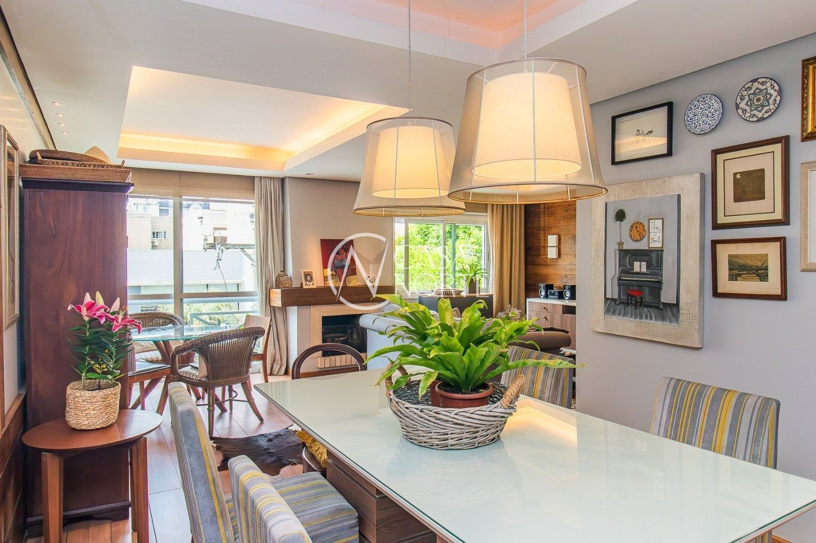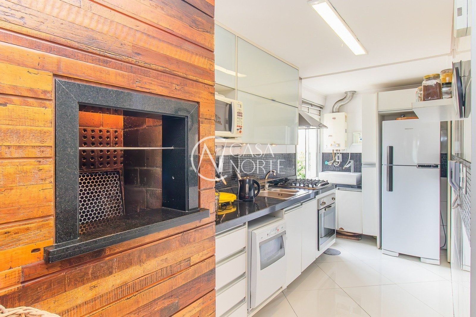 Ao entrar, você será recebido por uma acolhedora sala de estar, equipada com lareira para os dias mais frios. A cozinha e a área de serviço estão integradas, proporcionando um ambiente funcional e agradável. Além disso, o apartamento conta com churrasqueira, ideal para momentos de confraternização com amigos e familiares.