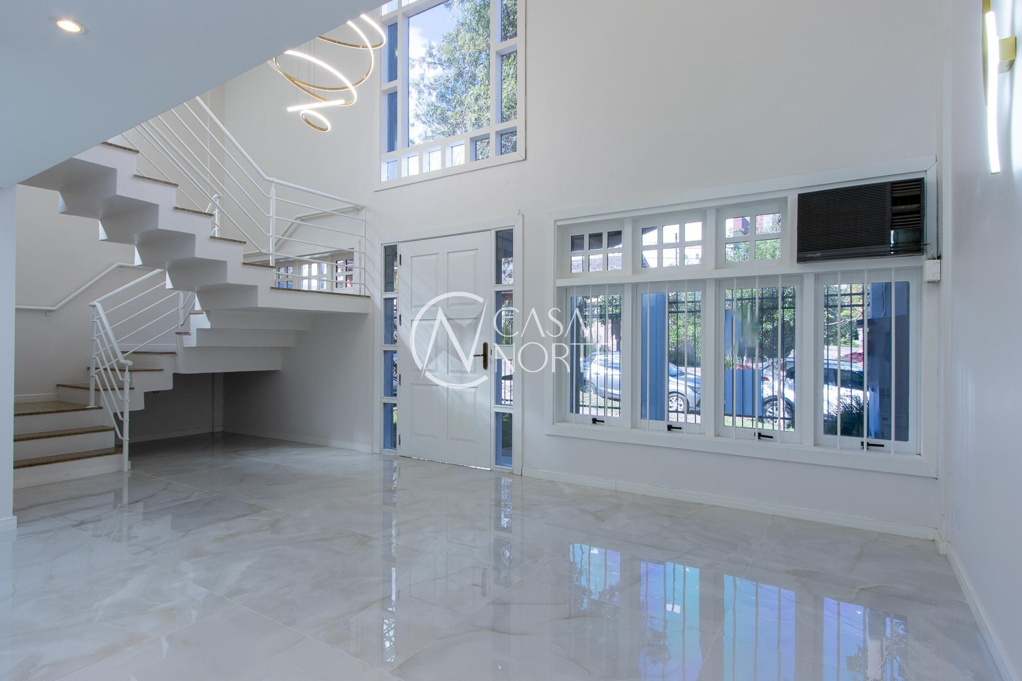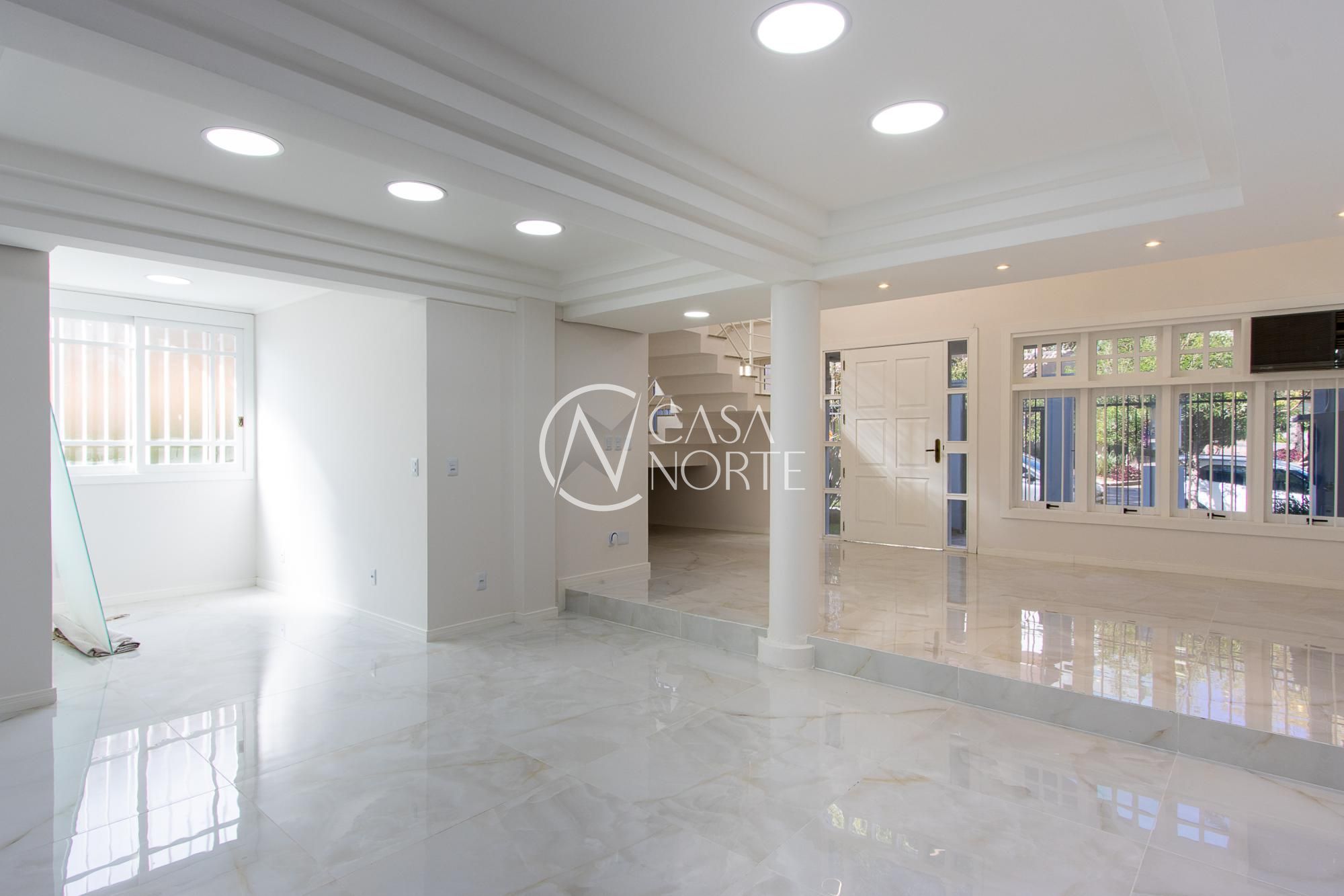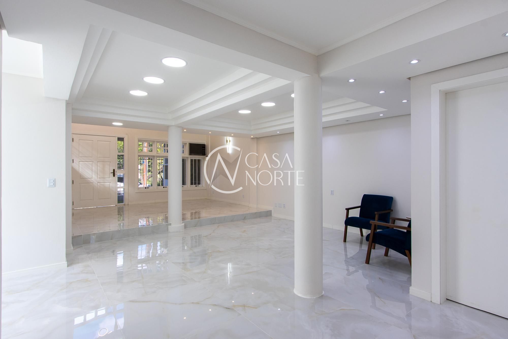 Na chegada temos um espaço com pé direito alto, com uma sala em desnível e mais um escritório, 3 salas menores , cozinha de apoio, e lavabo.