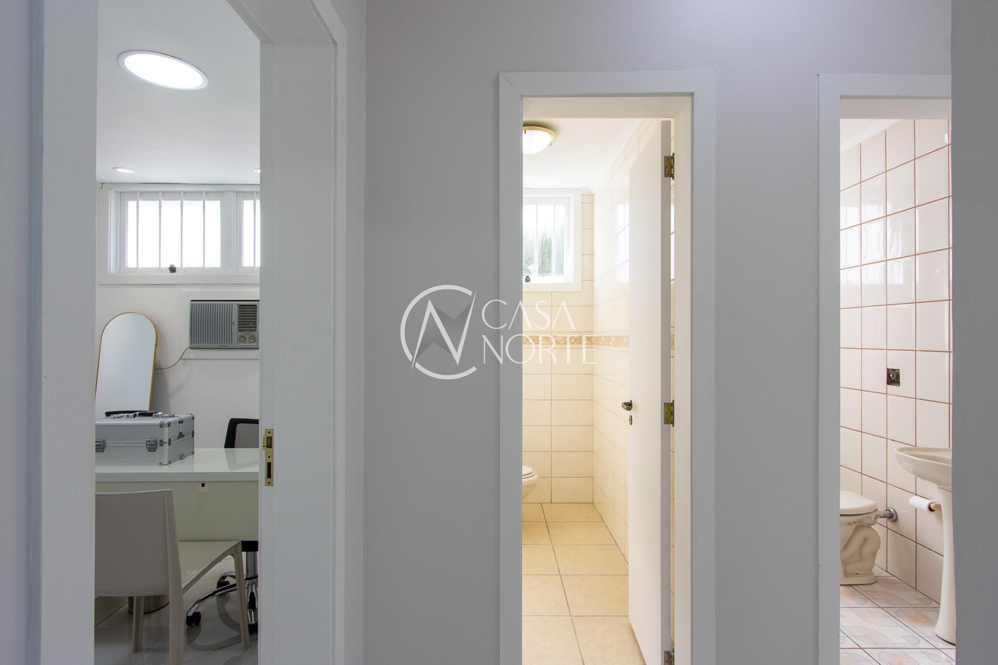 No segundo pavimento, com acesso por uma linda escadaria, temos 5 salas de trabalho, e 2 banheiros/vestiários.