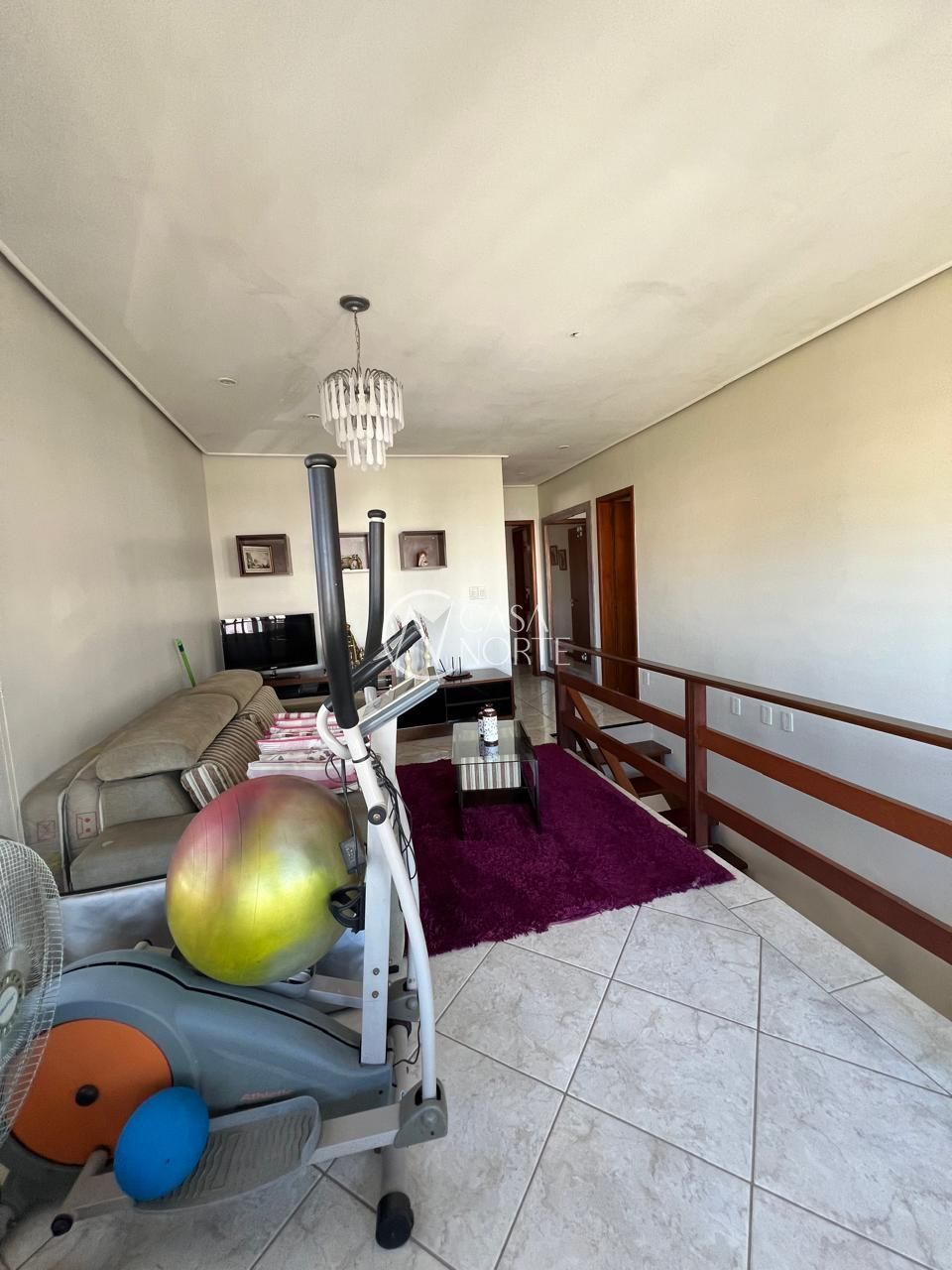 No segundo andar, uma aconchegante sala de estar proporciona um ambiente ideal para descanso e convivência.