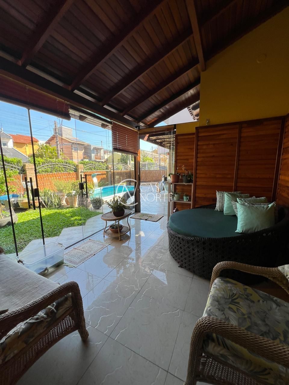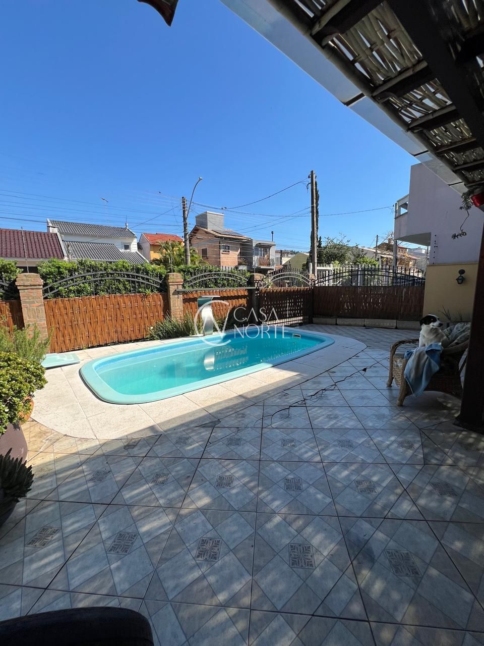 Em terreno anexo, o lazer é completo: piscina, salão com churrasqueira, fogão a lenha e forno de pizza, tudo pensado para momentos de descontração e celebração.