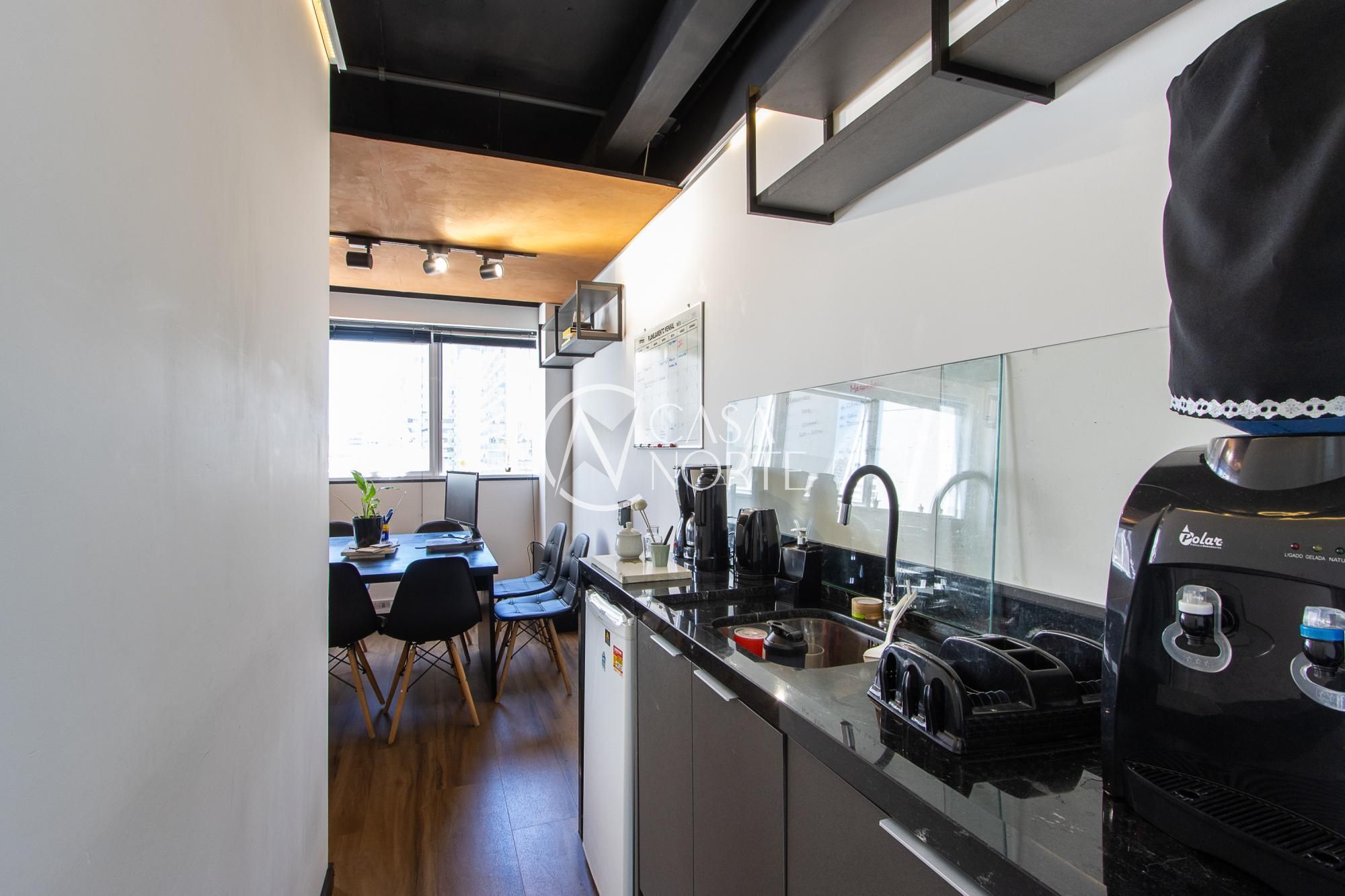 Sala comercial com 35,63m² privativos no empreendimento DOC Santana, andar alto, com 1 vaga escriturada.
