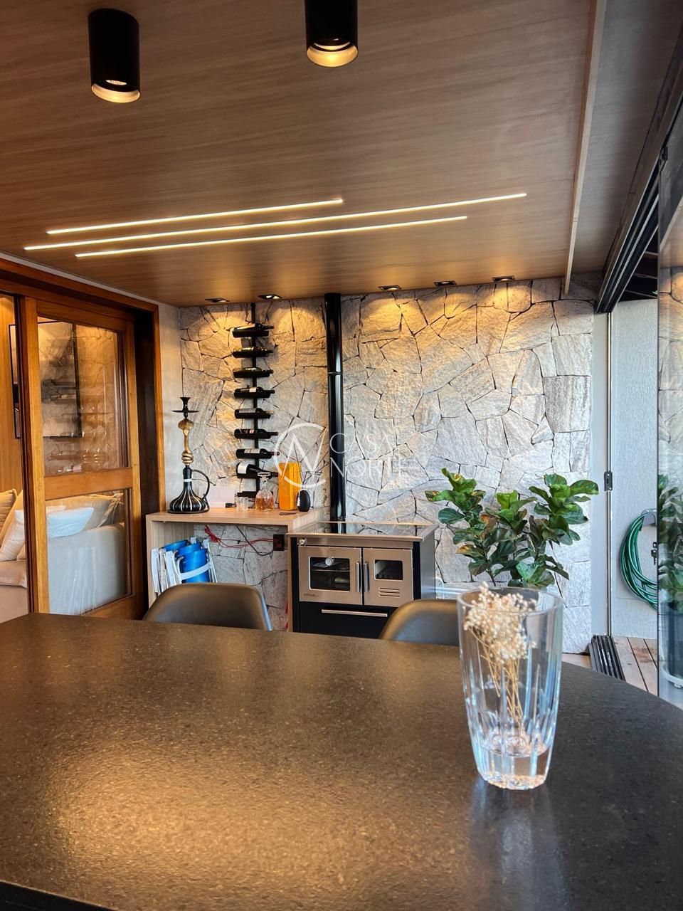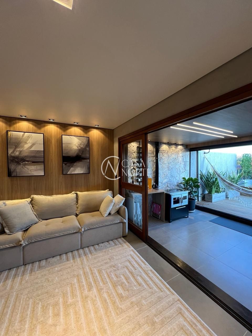 São 3 dormitórios, sendo uma suíte aconchegante, living amplo com lareira, cozinha montada, espaço gourmet com churrasqueira, adega climatizada, área de serviço independente e um pátio com deck, ideal para momentos de lazer e relaxamento.