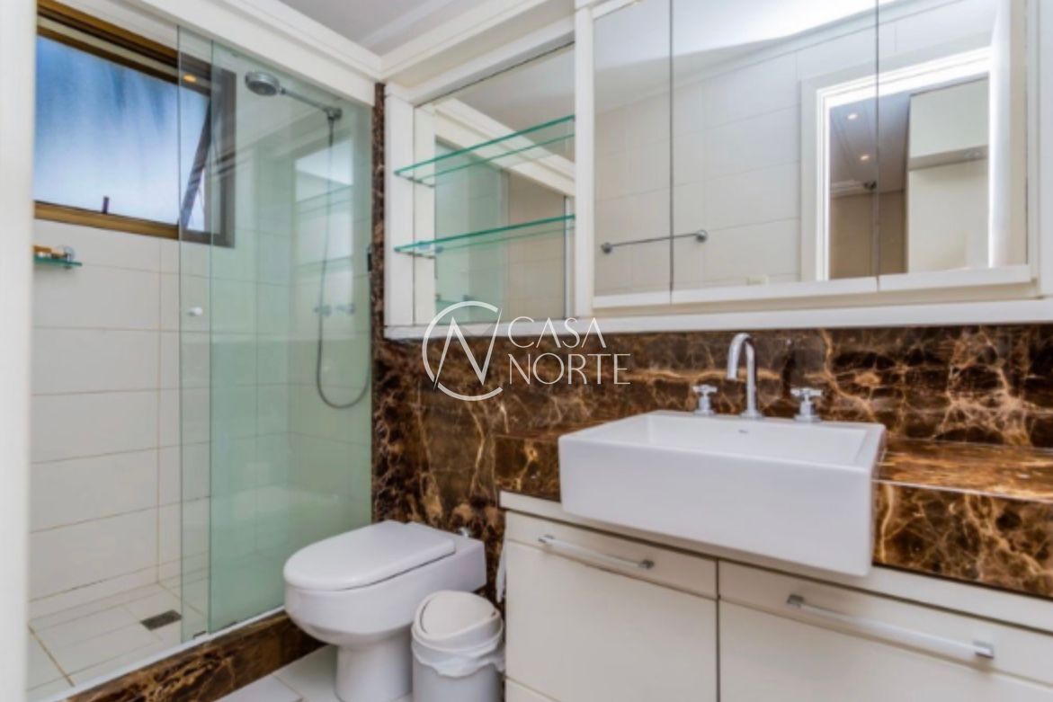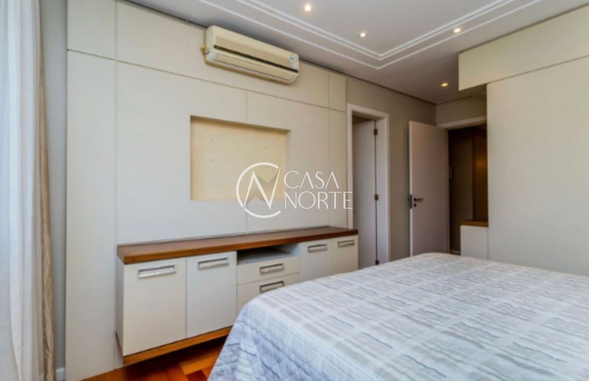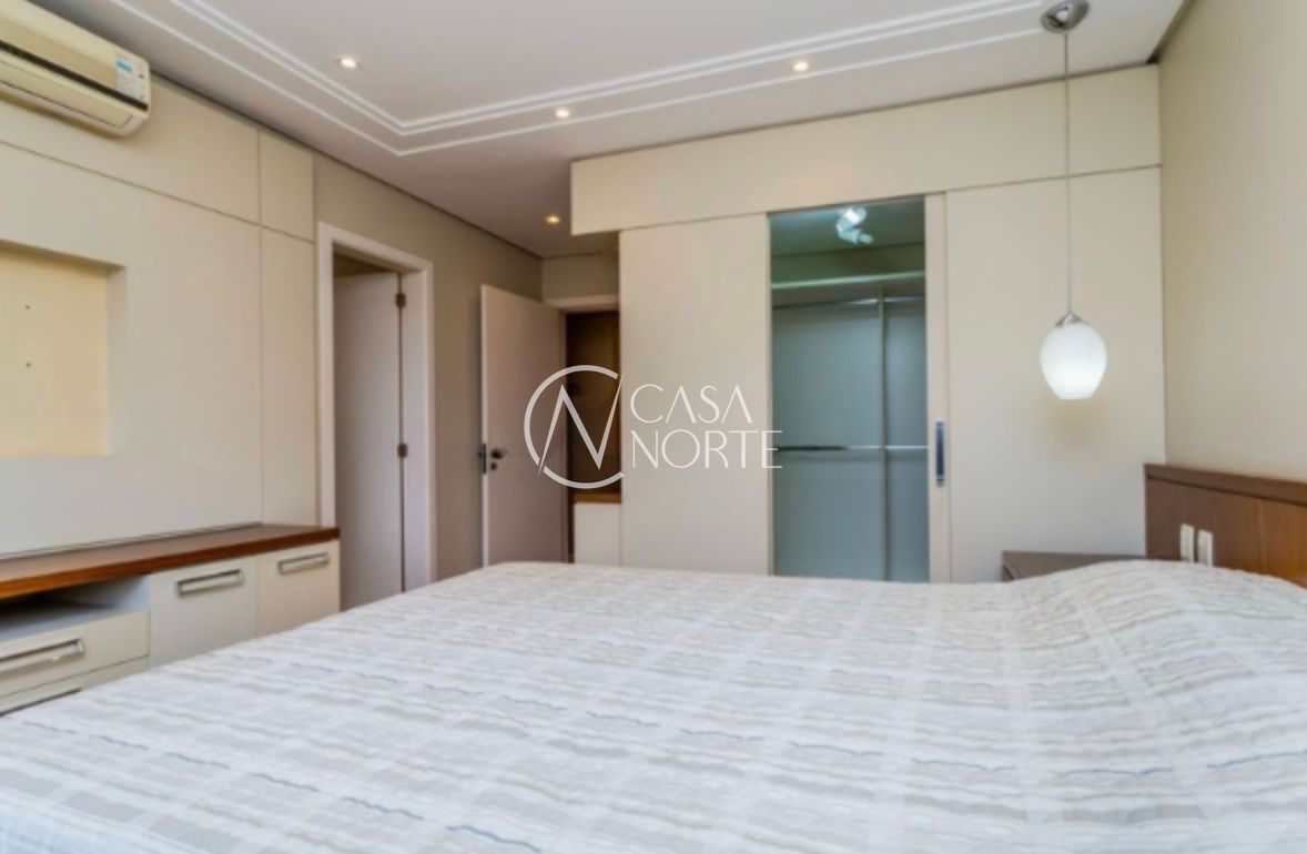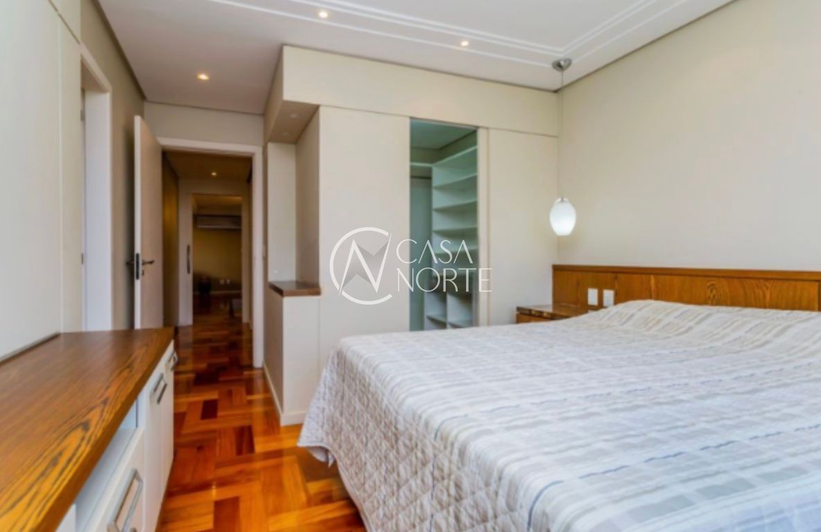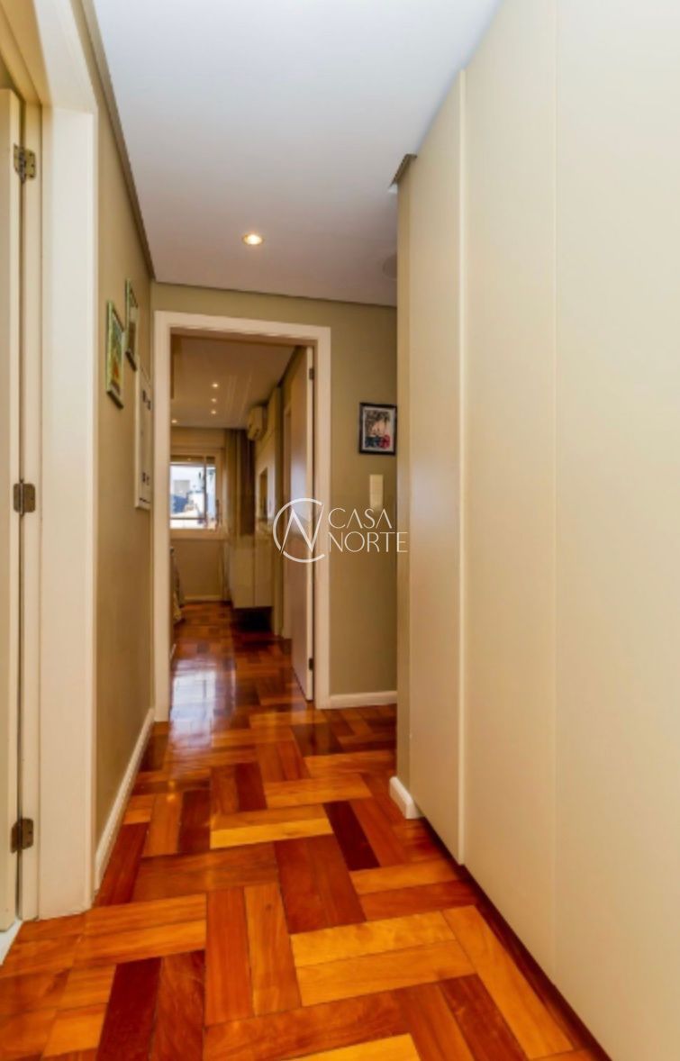 Apartamento com 126,95m², três dormitórios, sendo uma suíte. Finamente decorado e semi-mobiliado, com piso em madeira nobre, banheiros revestidos em mármore e split em todas as peças. O imóvel conta com excelente posição solar, é bem ventilado e possui amplo living para dois ambientes com lareira.