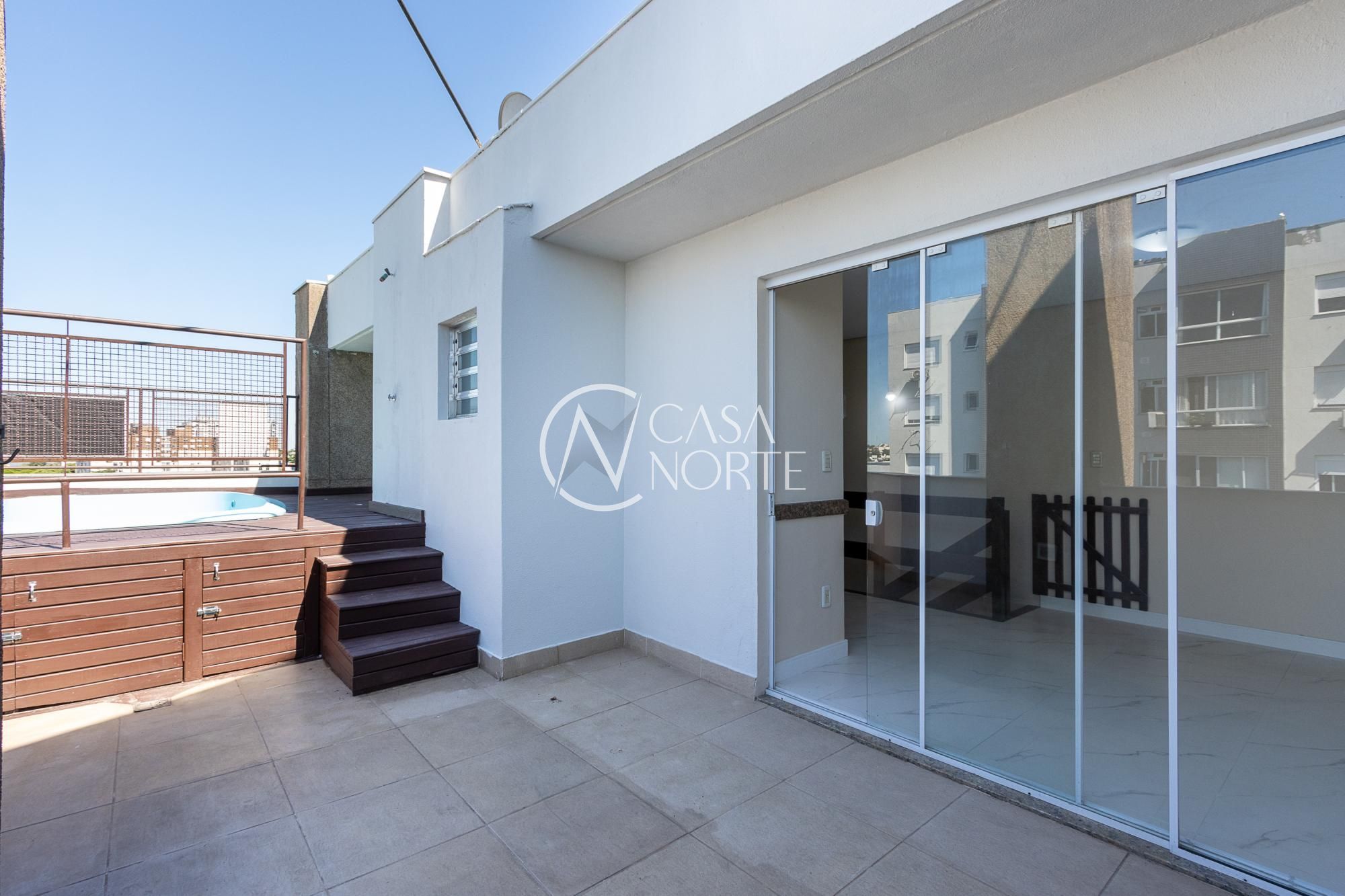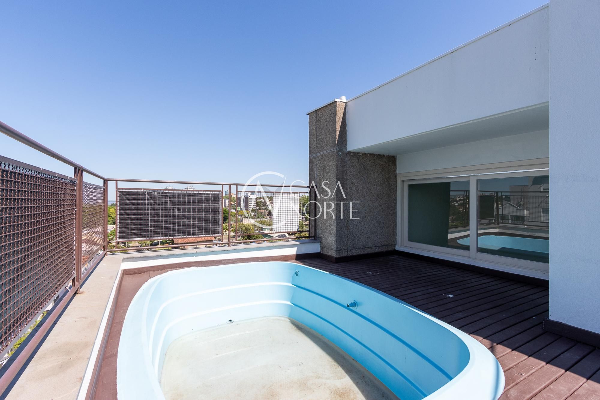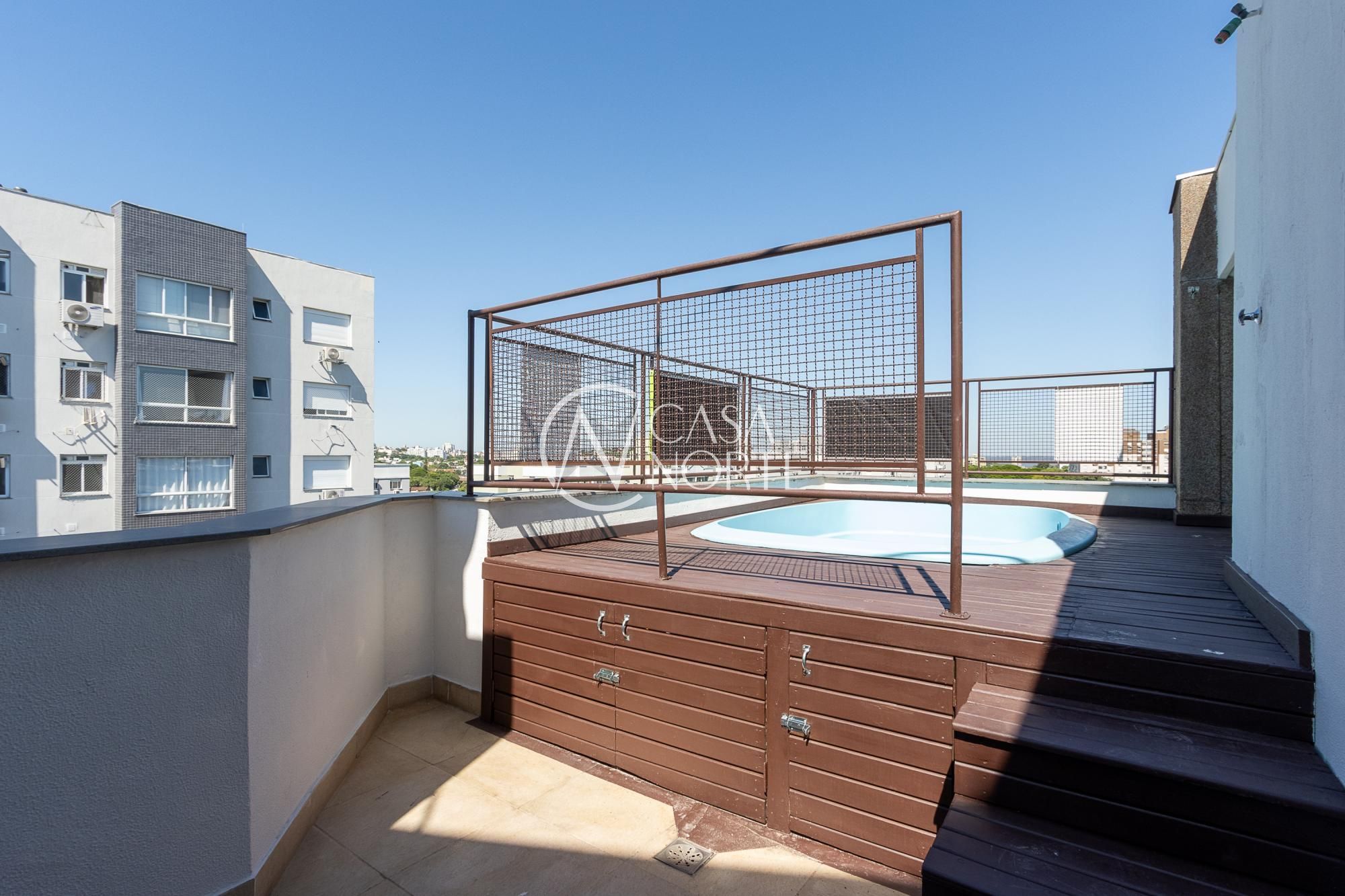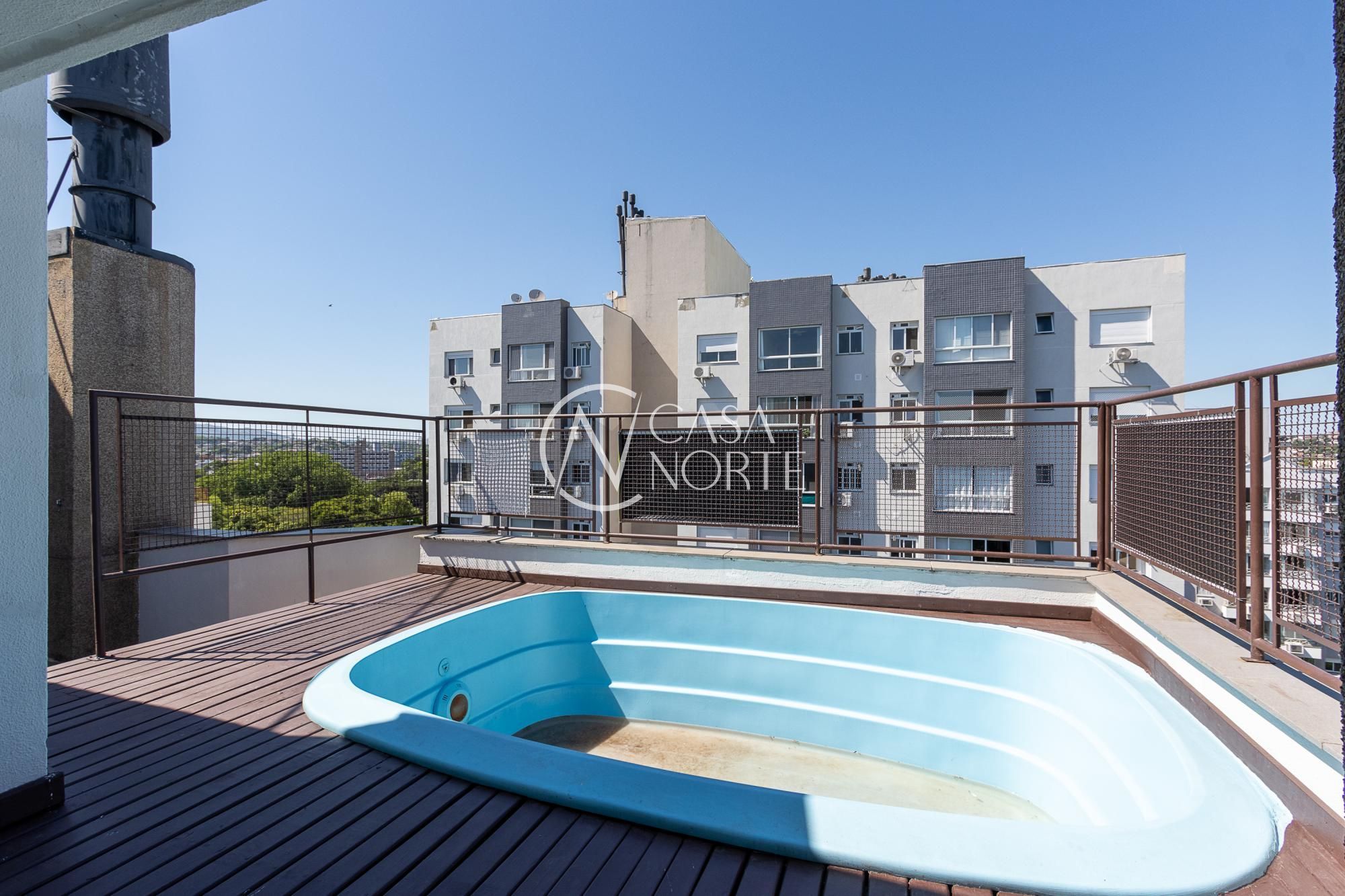 Cobertura impecável, piso porcelanato novo em todos os ambientes e vista panorâmica. Imóvel possui no primeiro pavimento uma sala de estar / jantar, cozinha, lavanderia / dispensa, dois dormitórios e banheiro social. No pavimento superior mais um dormitório com suíte, espaço gourmet com churrasqueira, terraço aberto com deck e piscina privativa. Condomínio com portaria 24:00hs e 2 salões de festas independentes.