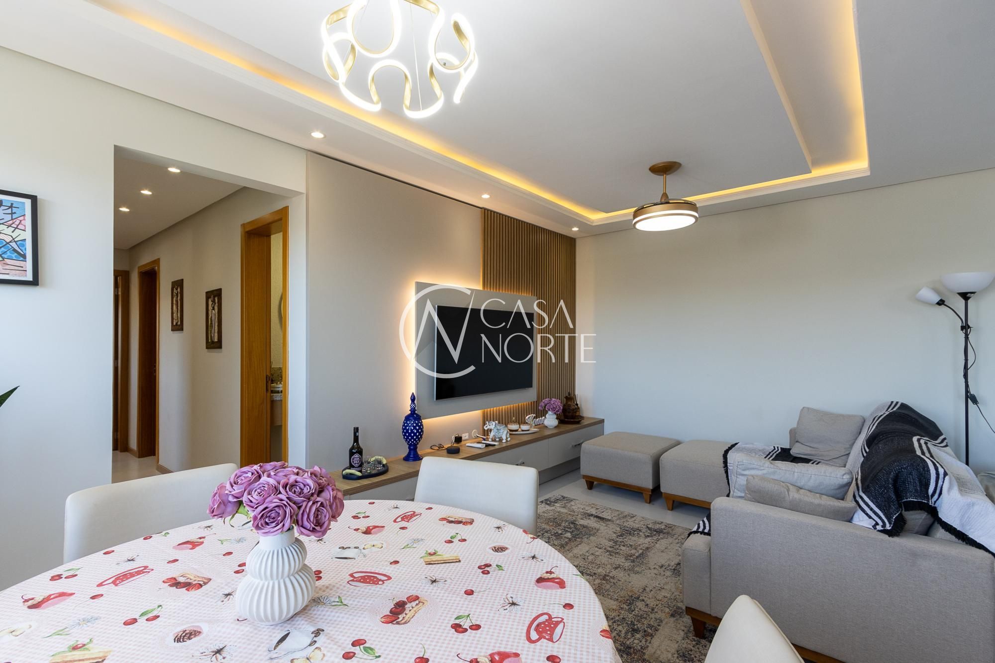 Apartamento praticamente novo, apenas 3 anos de uso, semi mobiliado, piso porcelanato nas áreas úmidas e sociais e piso laminado nos dormitórios. Possui cozinha, serviços, living amplo e varanda fechada com espaço para churrasco, circulação, banheiro social, dois dormitórios e uma suíte.