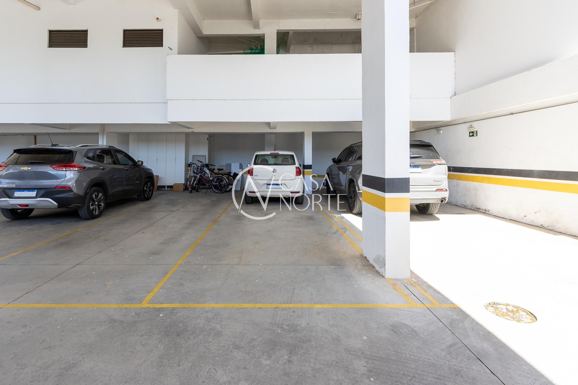 A vaga de estacionamento é dupla e coberta.