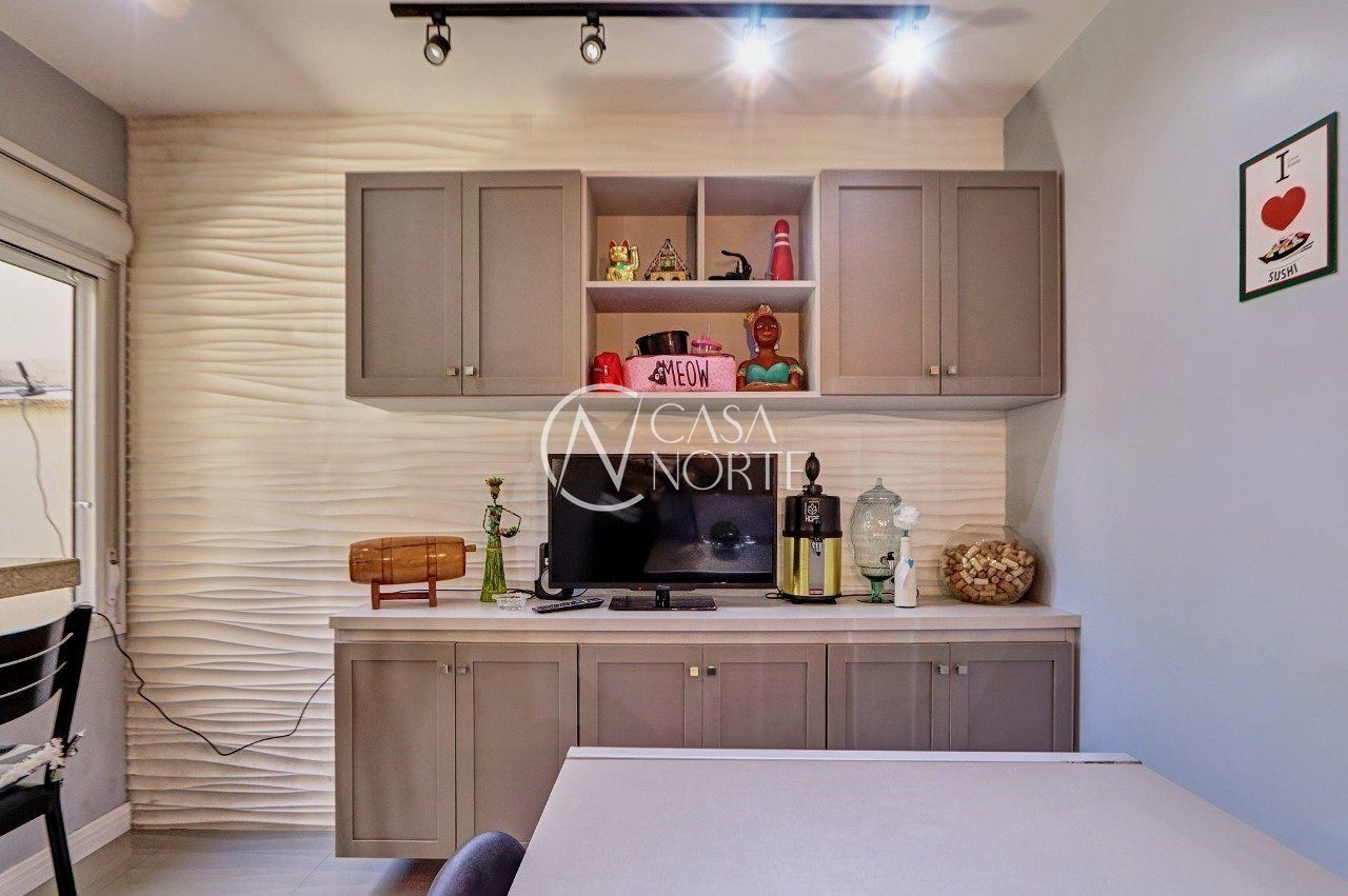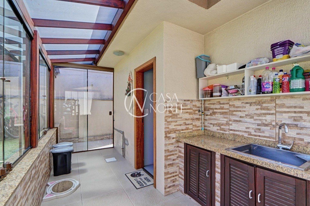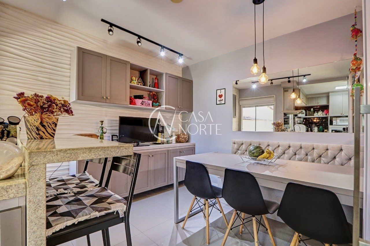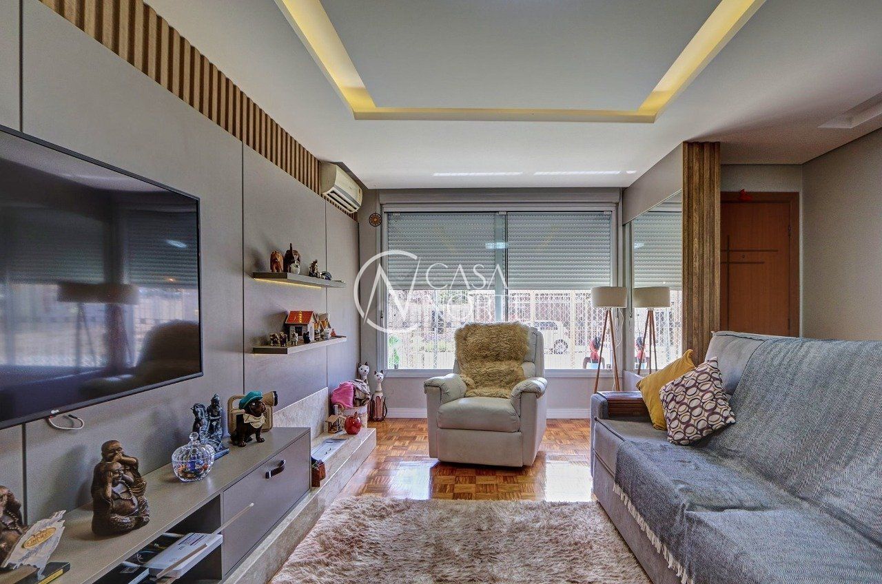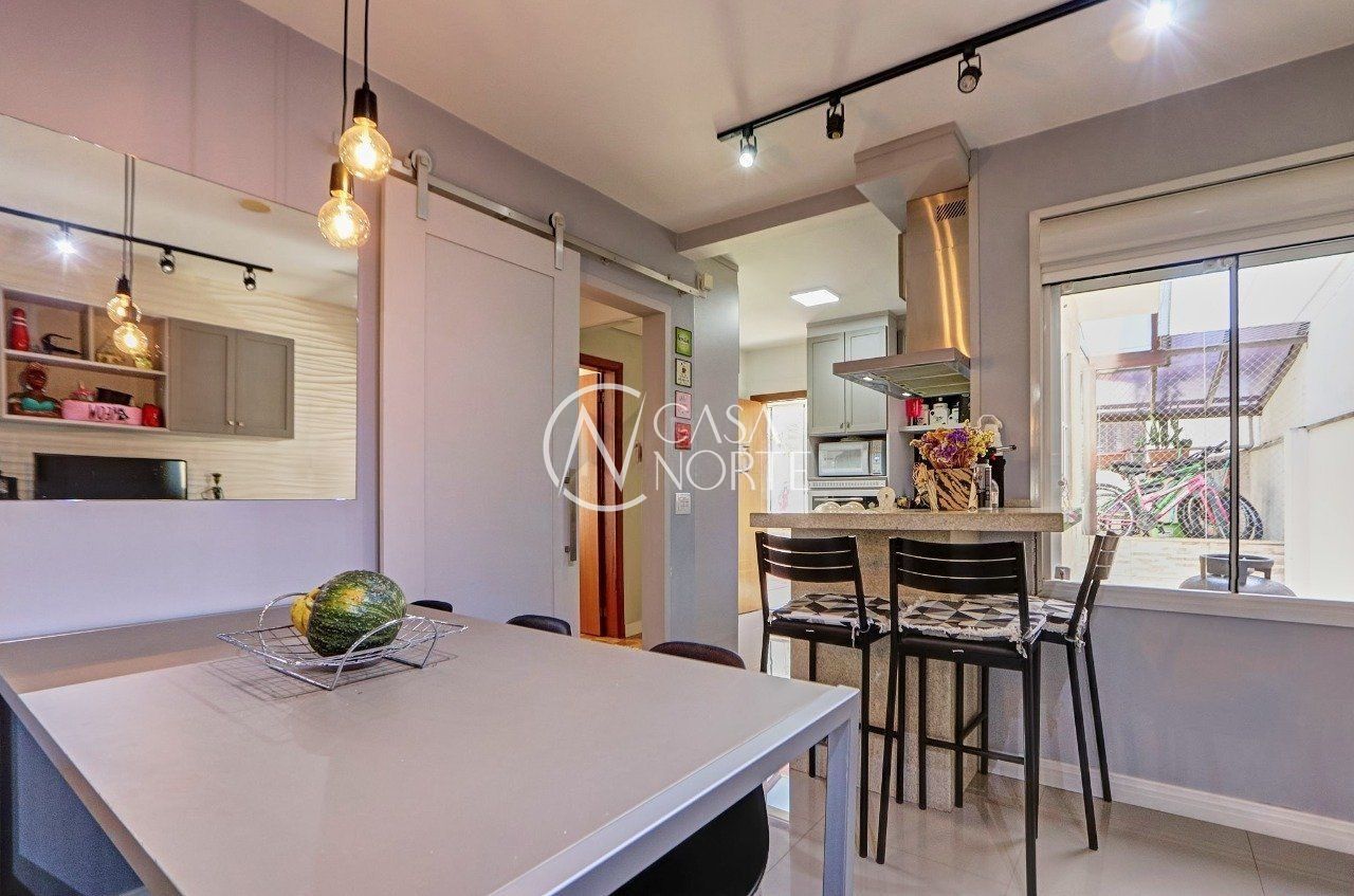 Casa térrea de 2 dormitórios, totalmente reformada, semimobiliada, com móveis sob medidas em todos os cômodos, living para 2 ambientes com lareira ecológica, copa-cozinha, banheiro social, lavanderia, dependência completa (possibilidade 3º dormitório), pátio frontal e nos fundos, canil.