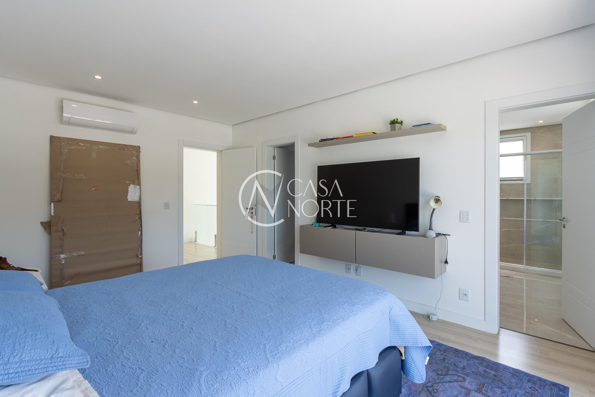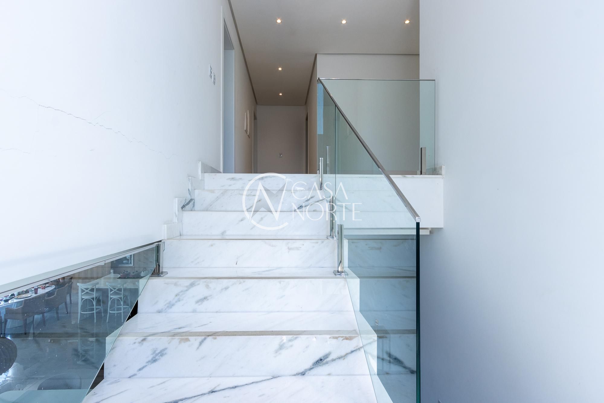 No pavimento superior, são 3 suítes espaçosas, incluindo suíte master com vista para a área de preservação, posição elevada em relação às casas vizinhas e total privacidade. Conta ainda com estar íntimo e sacada com vista privilegiada. Dormitórios amplos, bem ventilados e com excelente iluminação natural.
