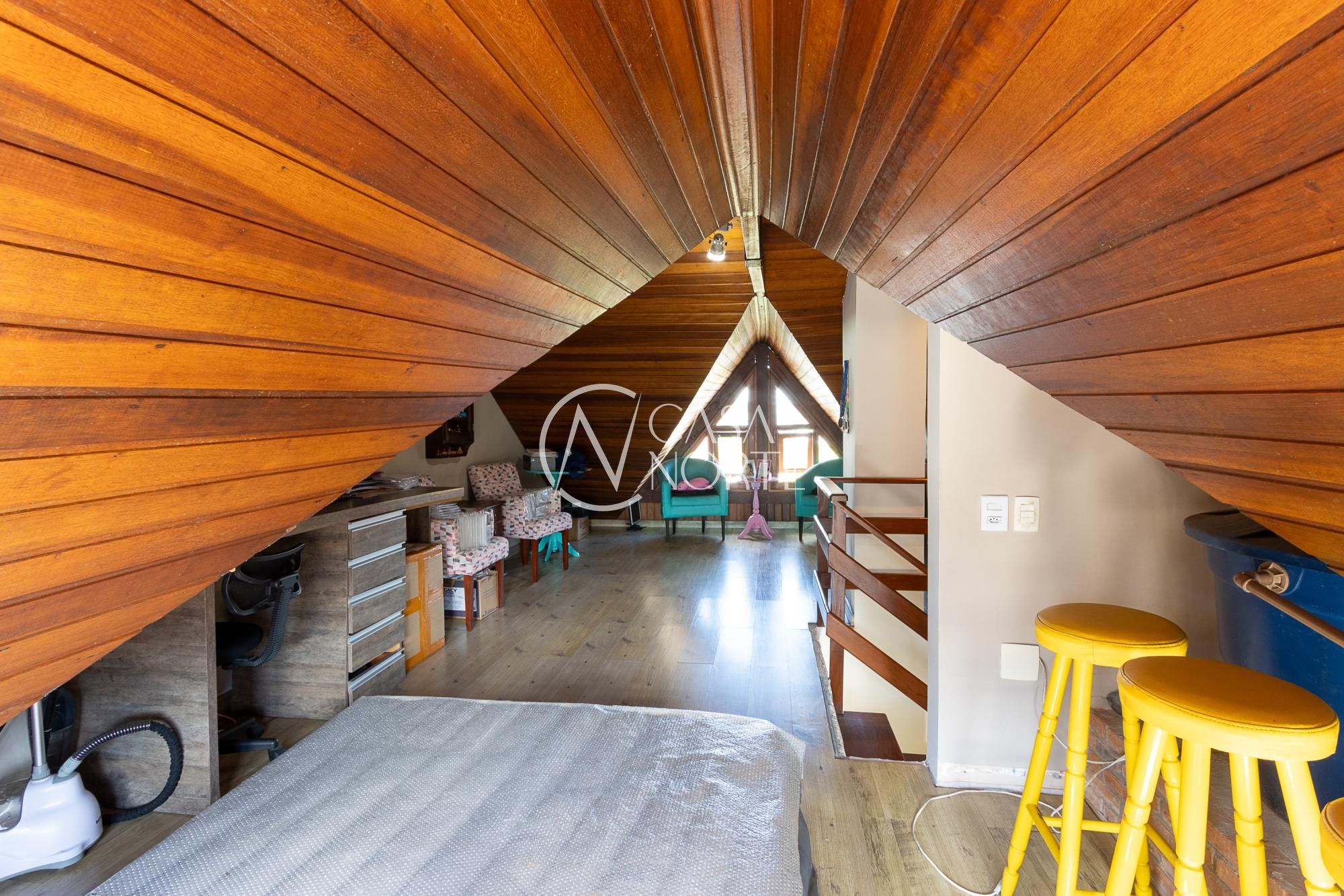 Excelente casa com 2 dormitórios, sendo 1 suíte. Conta ainda com sótão, que pode ser utilizado como escritório, sala íntima ou até mesmo como um terceiro dormitório, oferecendo versatilidade aos ambientes.