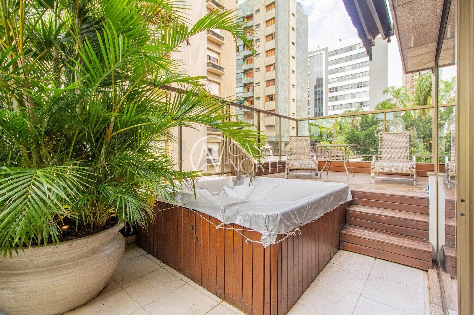 Possui living amplo para três ambientes, com sala de estar, jantar e espaço churrasco, além de terraço privativo com jacuzzi, ideal para momentos de lazer e relaxamento.