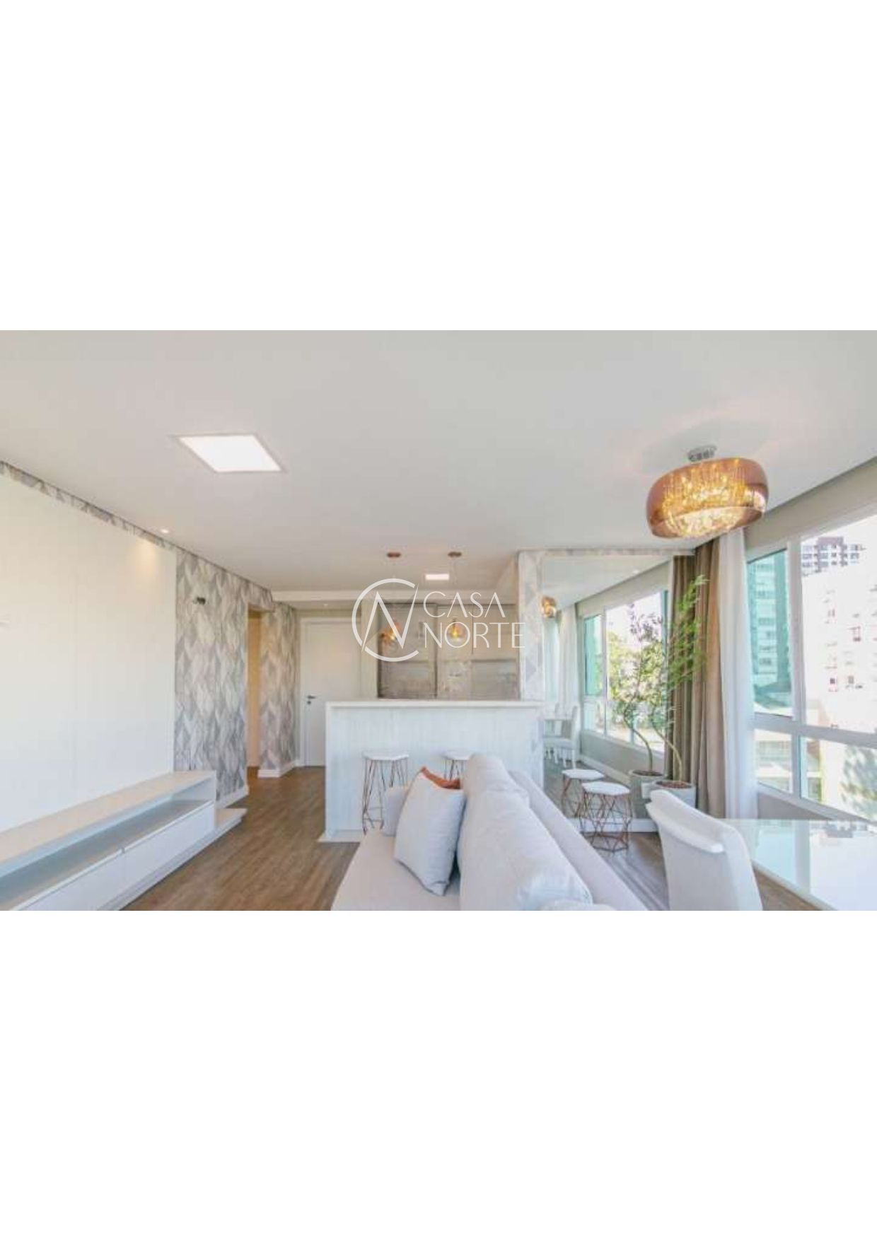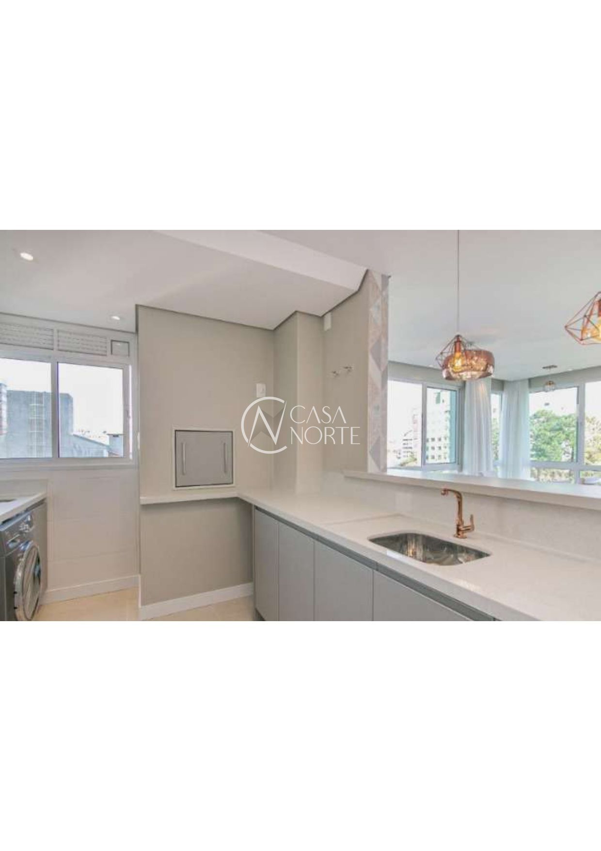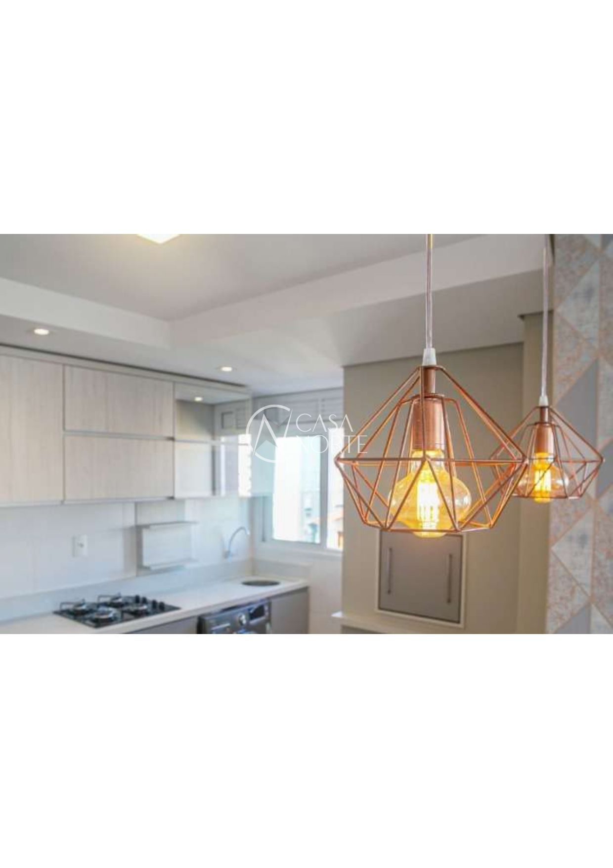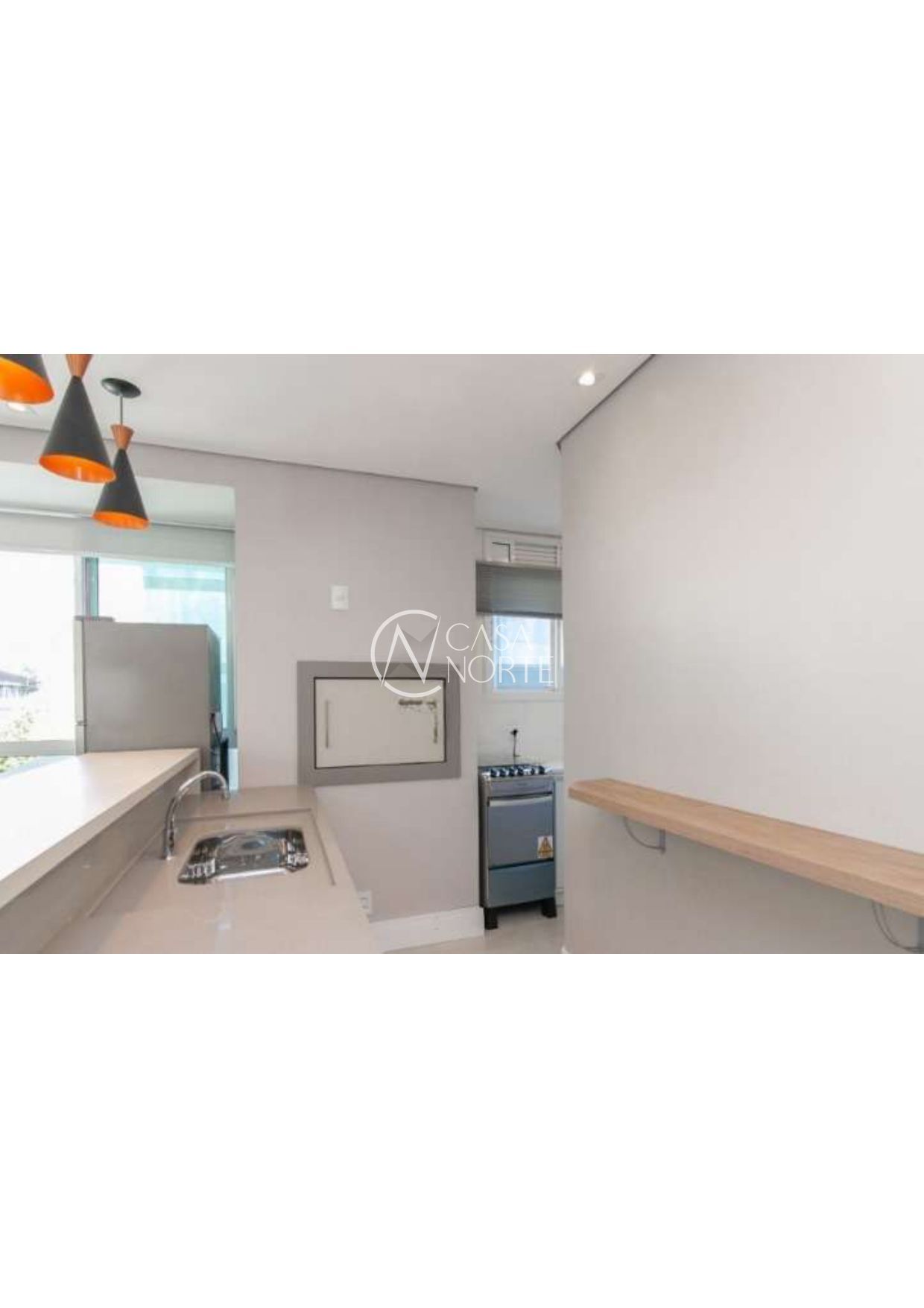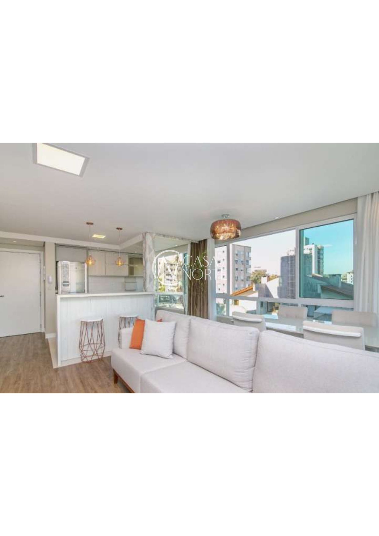 2 Dormitórios ( 1 suite ), banho social, living 2 ambientes em piso laminado, cozinha americana com espaço churrasco e área de serviço.