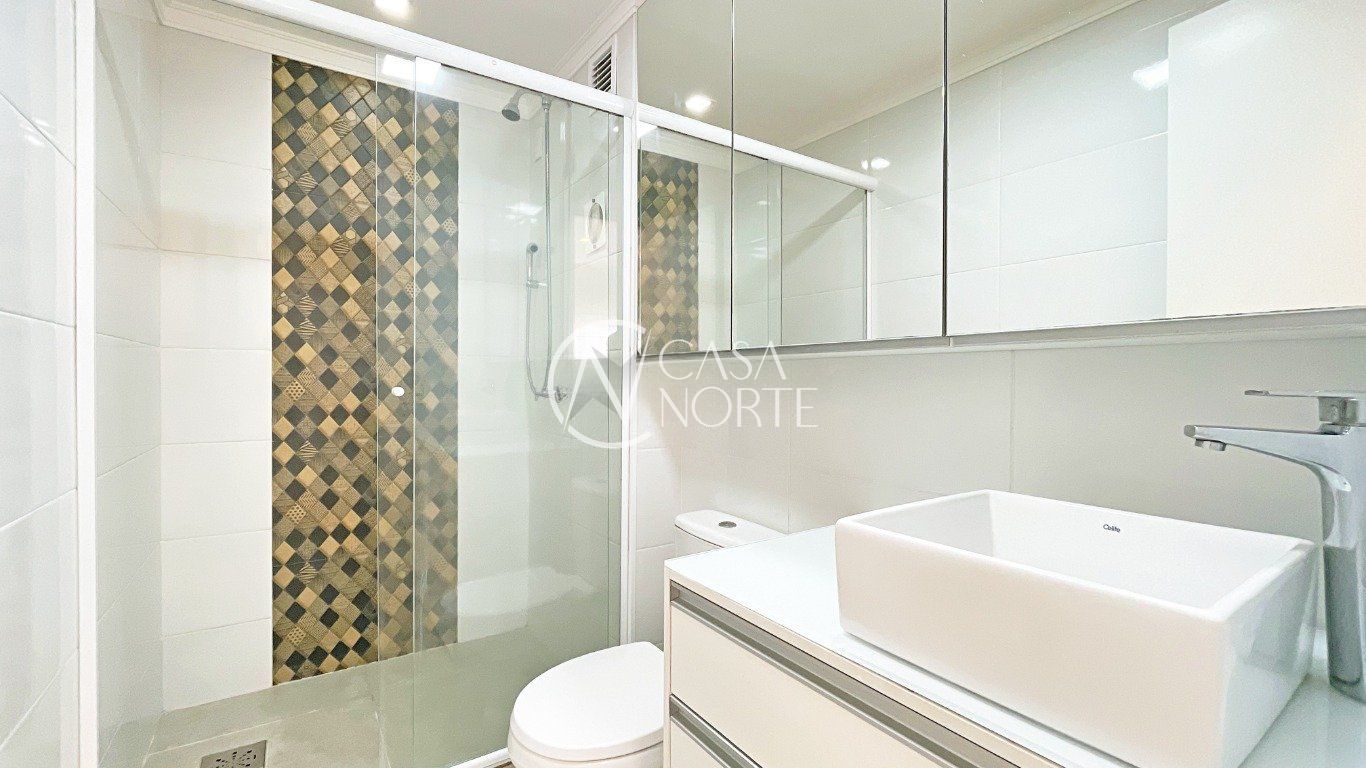 Conta com 1 suíte ampla, bem iluminada e ventilada, com banheiro equipado com box de vidro e banheira com hidromassagem. Segundo quarto transformado em closet, amplo e arejado. Terceiro quarto versátil, podendo ser utilizado como closet, escritório, despensa, biblioteca, espaço para treinos ou quarto de visitas. O apartamento possui ainda 1 banheiro auxiliar, com box de vidro e revestimento em cerâmica. 1 vaga de garagem coberta.