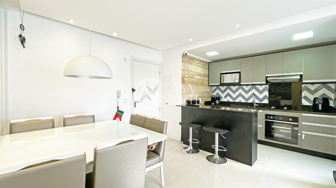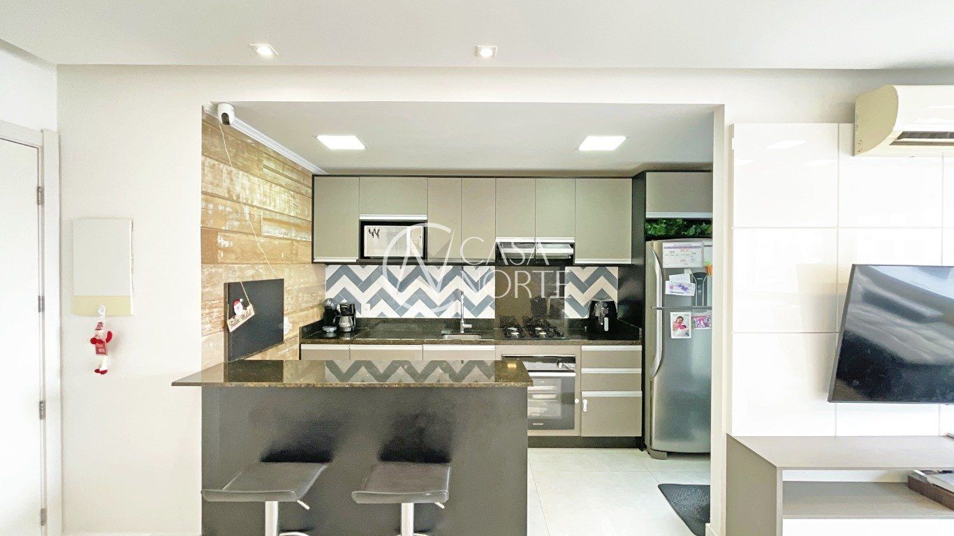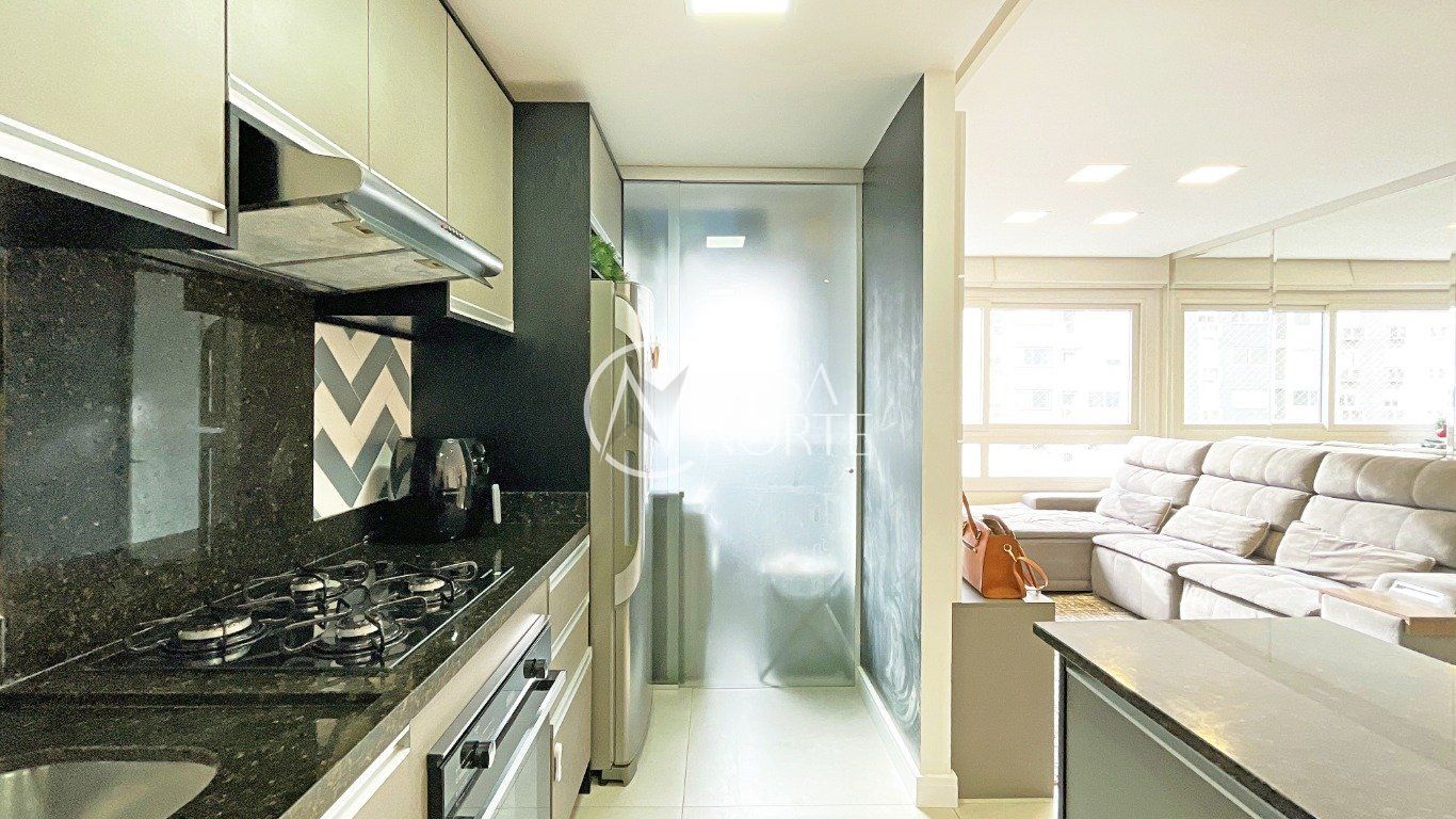 Apartamento com sala ampla, com janelas grandes que garantem excelente iluminação solar e ventilação natural. Cozinha com móveis planejados, arejada e iluminada, em piso porcelanato, com janelas amplas. Área de serviço arejada e iluminada, com gás central.