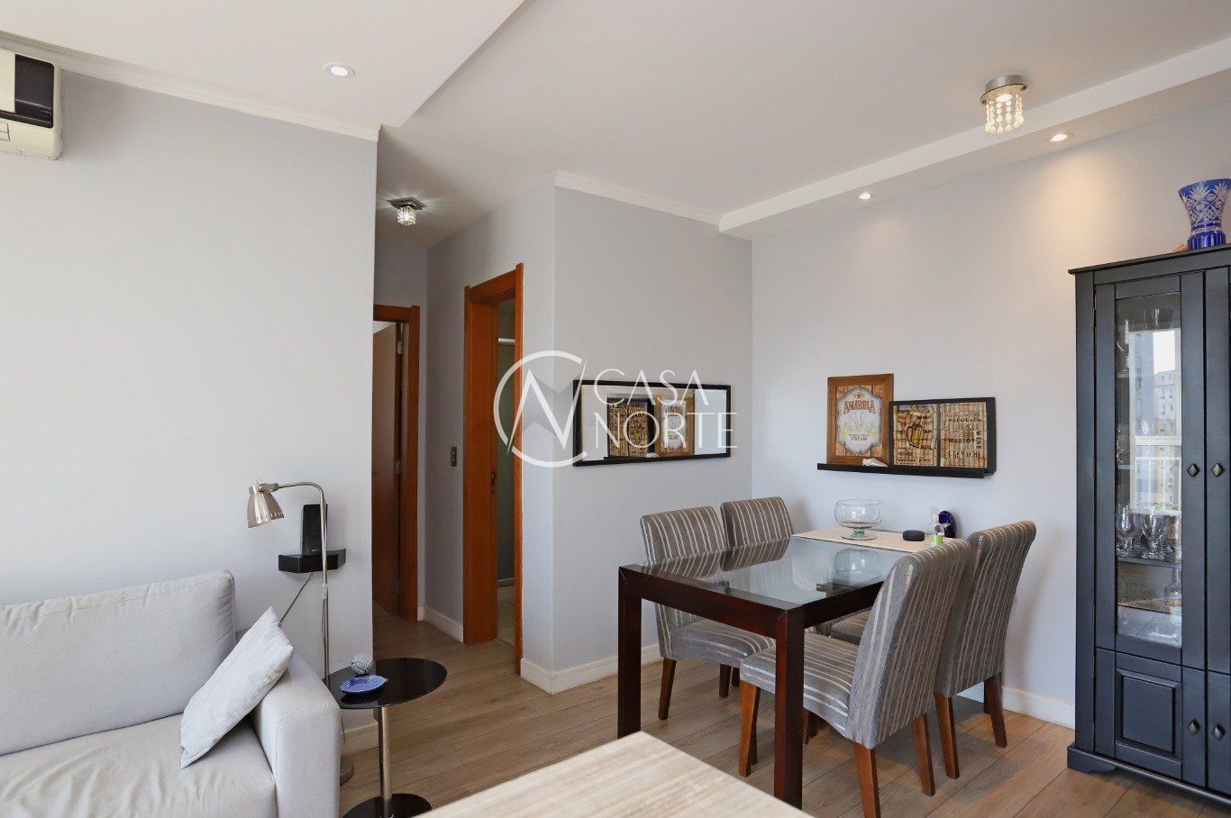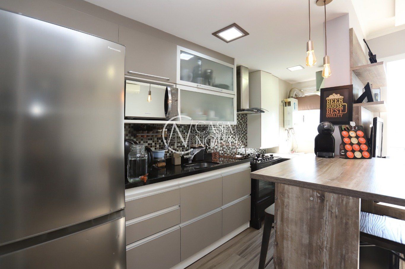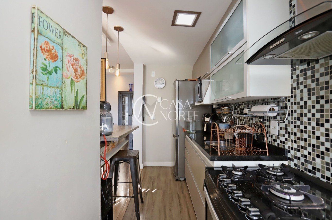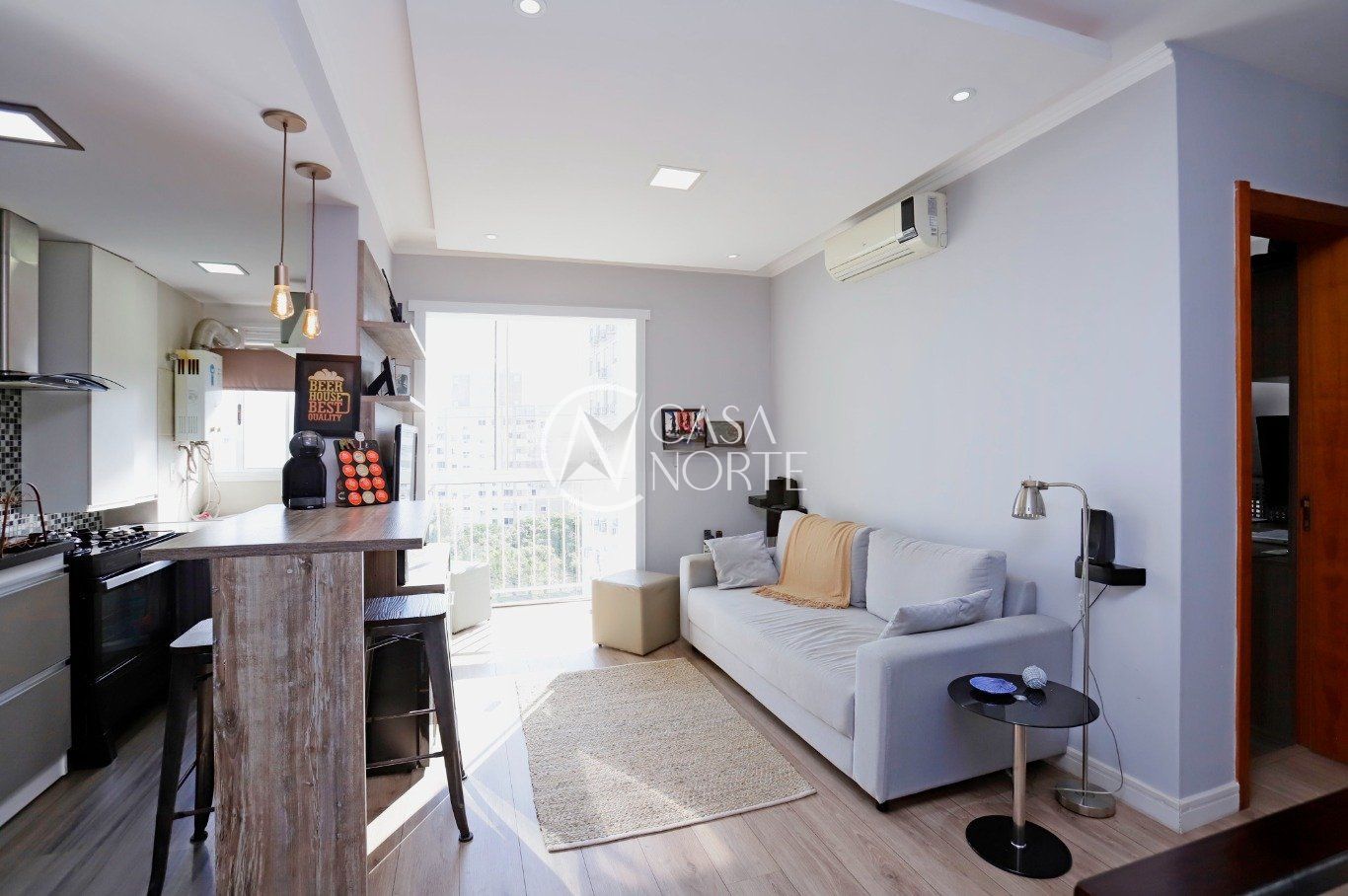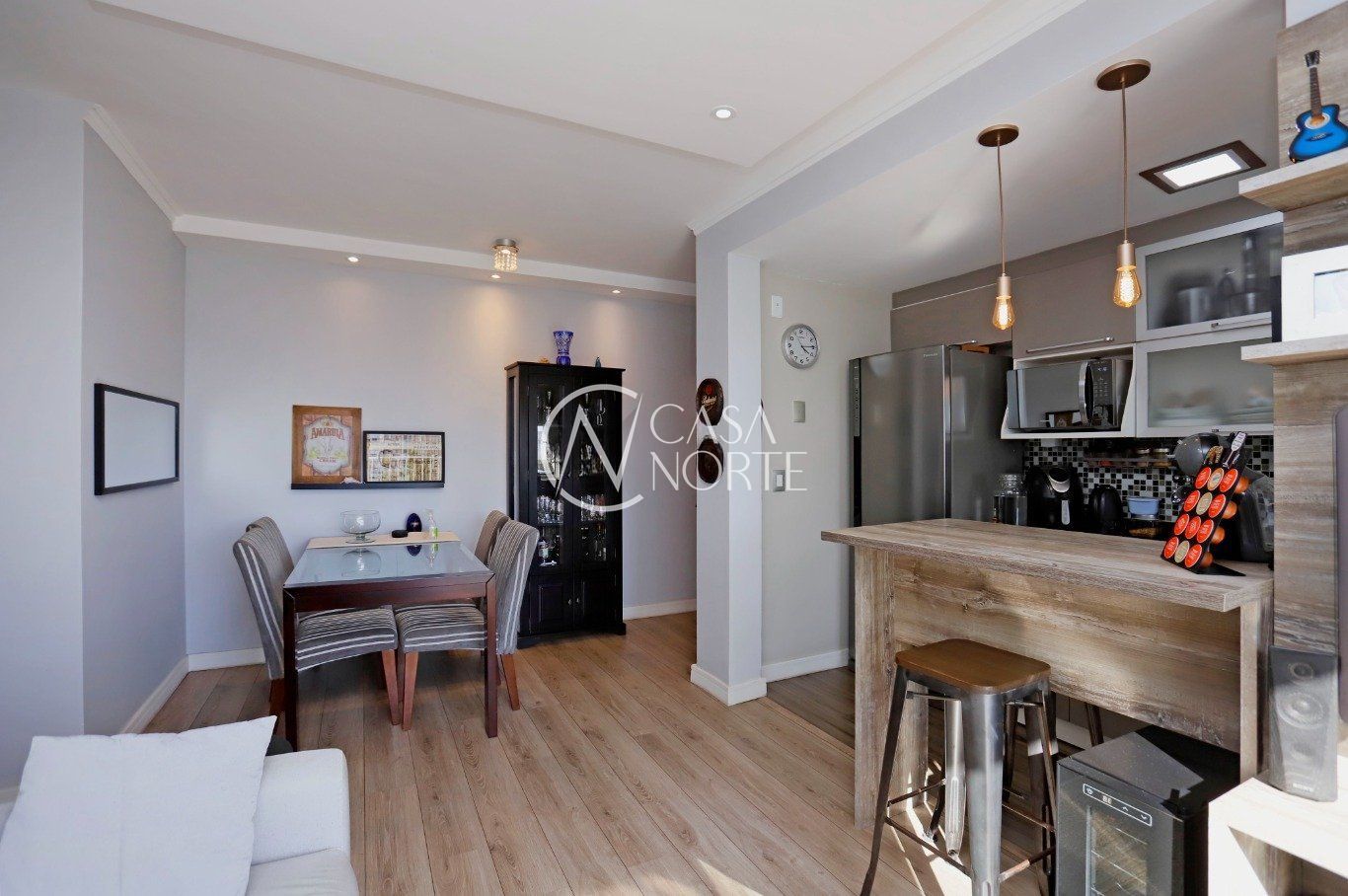 Dois dormitórios, sendo uma suíte, dois banheiros, living dois ambientes com integração à sacada, cozinha, área de serviço integrada, uma vaga de garagem.