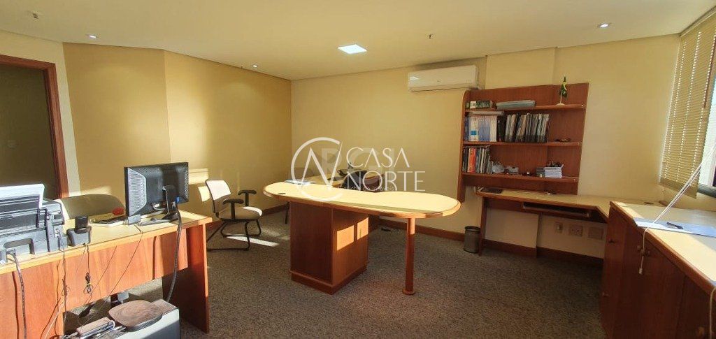 Ótima sala comercial localizada em área nobre e de fácil acesso da cidade! Ampla sala comercial totalmente mobiliada. Espaço para recepção com banheiro e canto do café. Espaço de trabalho separado possibilidade de divisórias. Ficam todos os móveis, cadeiras, cortina e split. Vaga de garagem coberta e escriturada. Edifício com portaria 24h e central de identificação.