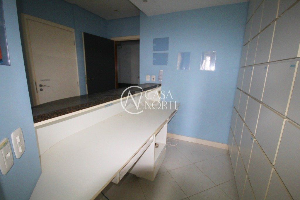 Sala comercial com área privativa de 38 metros quadrados localizada em excelente ponto comercial, quase na esquina da Avenida Carlos Gomes, no bairro Três Figueiras. O imóvel conta com divisórias integradas por recepção e sala de espera e duas salas de atendimento, com split em cada uma delas, além de um banheiro. O piso é todo em porcelanato e ela está localizada no segundo andar, de frente, com uma vaga de garagem aberta e escriturada. O condomínio conta com portaria, dois elevadores e zelador. O imóvel é ideal para laboratório, para clínica médica, entre outro.