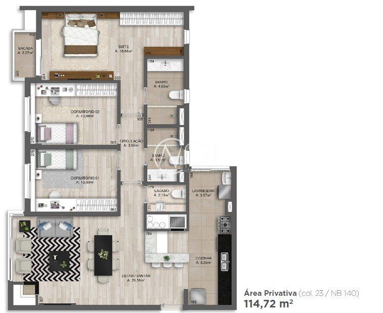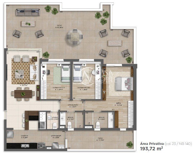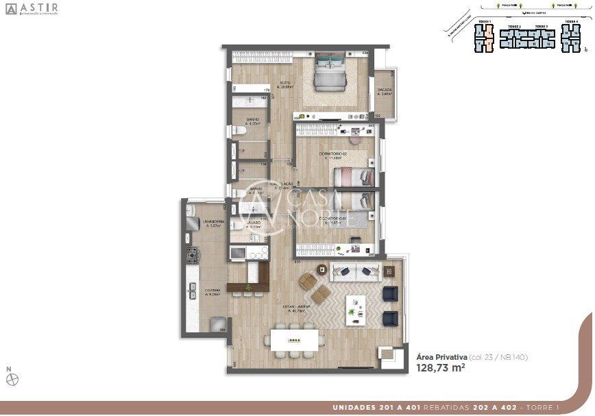São unidades de 3 dormitórios de 113 a 195 m² privativos, com churrasqueira, lareira e vaga de estacionamento.