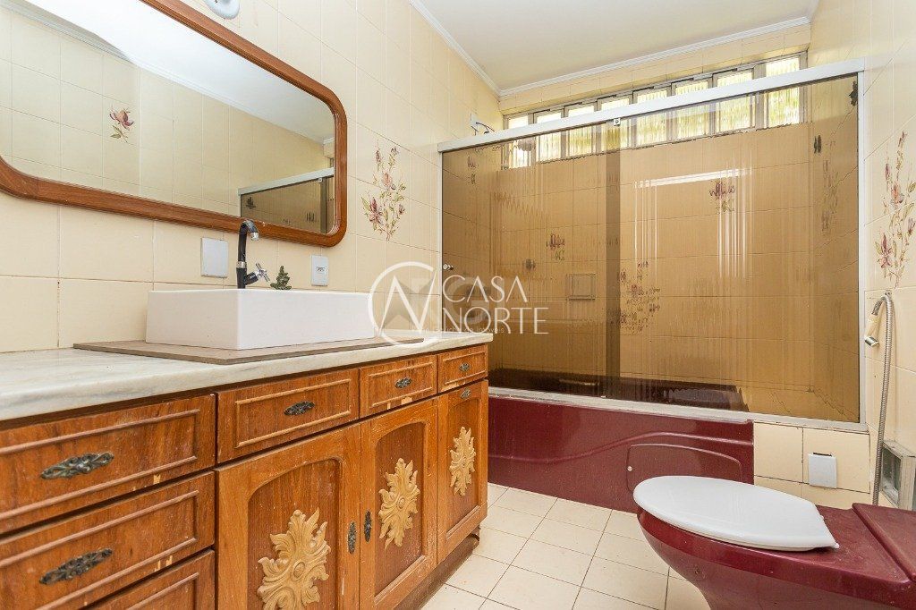 Casa, um apartamento com garagem em baixo com 3 vagas para carro cobertas. O conjunto possui um total de 2 salas, 2 cozinhas, 7 banheiros sendo um lavabo e uma suite e 5 dormitórios.