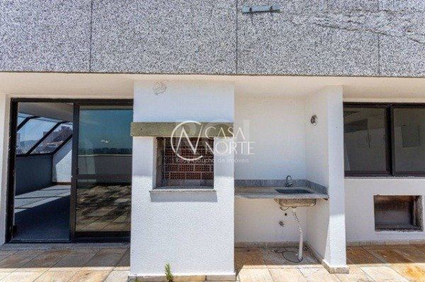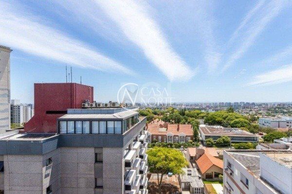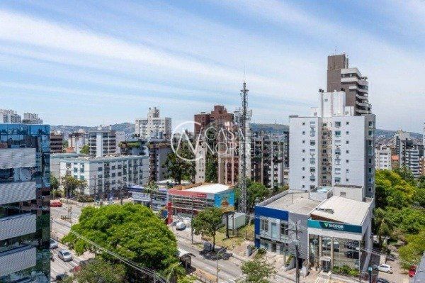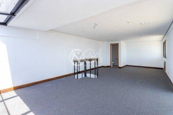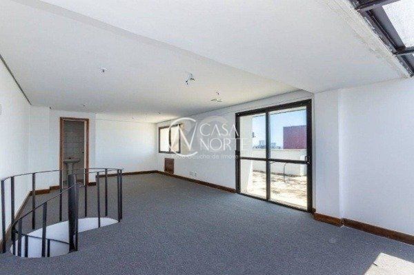 Ótima sala comercial no Centro Empresarial Carlos Gomes, cobertura/último andar, com 132m² privativos, divididos em 2 pavimentos, com 2 banheiros, amplo terraço com churrasqueira e excelente vista. Possui 2 vagas de garagem cobertas (box duplo). Condomínio com portaria (horrário comercial), elevadores, e monitoramento por câmeras. Localizada em ótima região próximo do Mãe de Deus Center, em região de amplo fluxo de veículos e pedestres. Agende já uma visita.