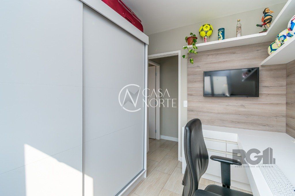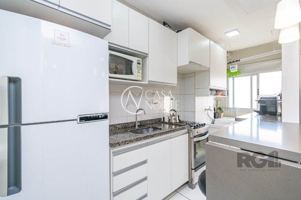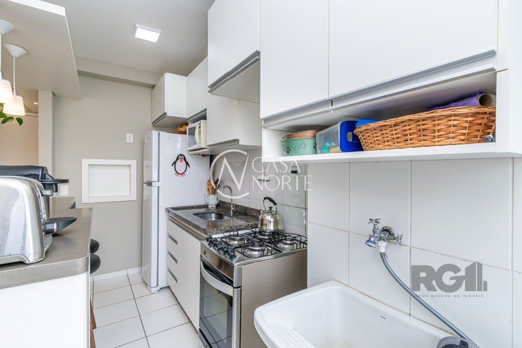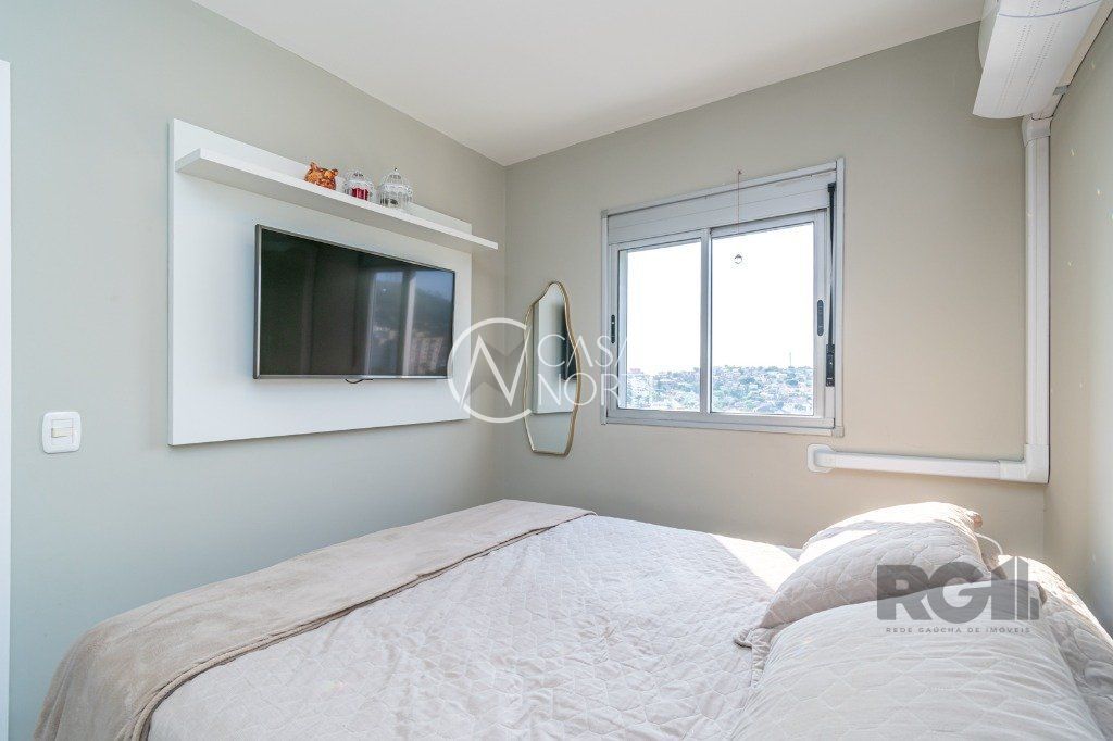 Andar alto com vista livre, iluminado e ensolarado com 2 dormitórios banheiro social, living para 2 ambientes, cozinha americana com churrasqueira, 1 vaga escriturada descoberta . Sol da manhã, piso frio porcelanato imitando laminado na sala e nos dormitórios e piso cerâmico nas áreas frias. Fica com os móveis fixos planejados, cozinha e banheiro, ar-condicionado split no quarto do casal e dormitório de solteiro, água quente na cozinha e chuveiros. Medidores de agua e gas individuais