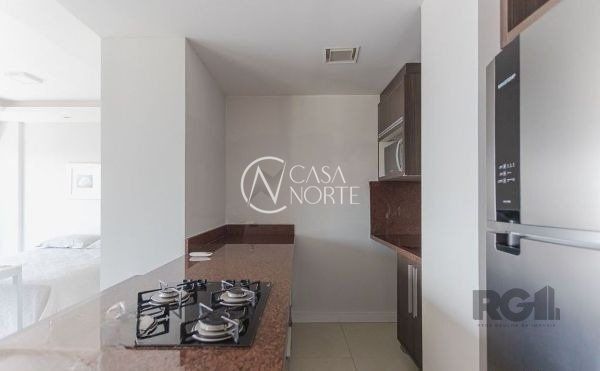 Ótimo apartamento estilo Loft, no Condomínio Trend City, finamente mobiliado, andar alto, ótima vista. Possui ampla sala possibilitando 2 ambientes, com rebaixe em gesso e piso porcelanato, banheiro com box de vidro, cozinha americana mobiliada. Água quente. Ficam móveis planejados, Split instalado, e alguns eletros. Vaga de garagem. Condomínio com portaria 24h, elevadores, 2 amplos salões de festas, piscina coberta, academia, sala de reuniões, rooftop, áreas de convivência, lavanderia. Localizado em ótima região próximo do Shopping Praia de Belas, do Parque Marinha, fácil acesso ao Centro.