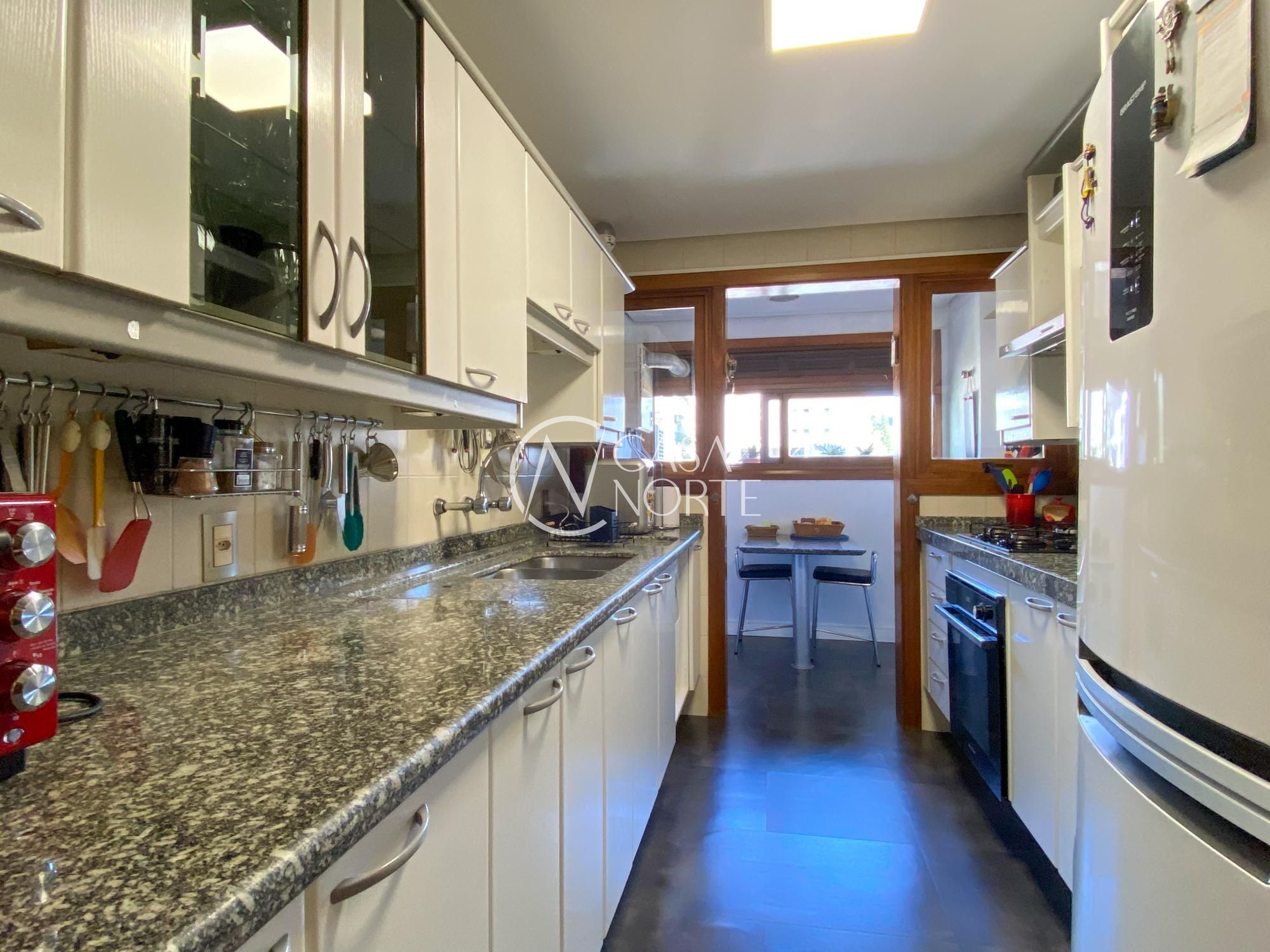 Apartamento com 3 dormitórios sendo um com suite e sacada. Living dois amplos ambientes, integra-se à varanda com churrasqueira, cozinha ampla com armários, dependência transformada em lavanderia, banheiro social e banheiro auxiliar e área de serviço. Apartamento andar alto, de frente, com vista perene.