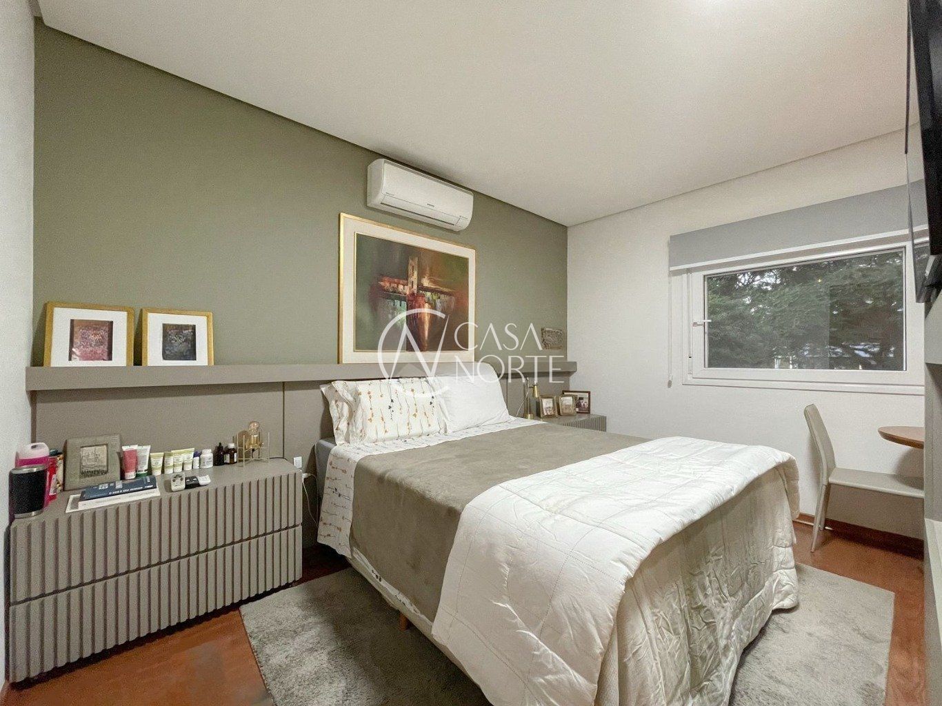 No Pavimento térreo garagem coberta para 4 carros, pátio com projeto de paisagismo exuberante, piscina aquecida, churrasqueira externa e banheiro de apoio. Área de serviço completa com dependência de empregada.