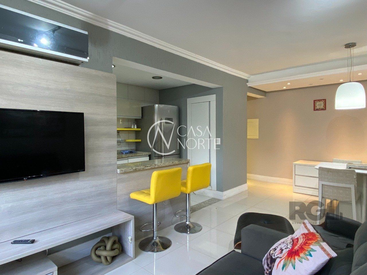 Apartamento mobiliado de 67m², 2 dormitório sendo 1 suíte, de frente, living amplo para 2 ambientes, cozinha americana, área de serviço integrada, banheiros social, despensa e 1 vaga de garagem coberta. Apartamento completamente mobiliado com móveis planejados e dois ar split.