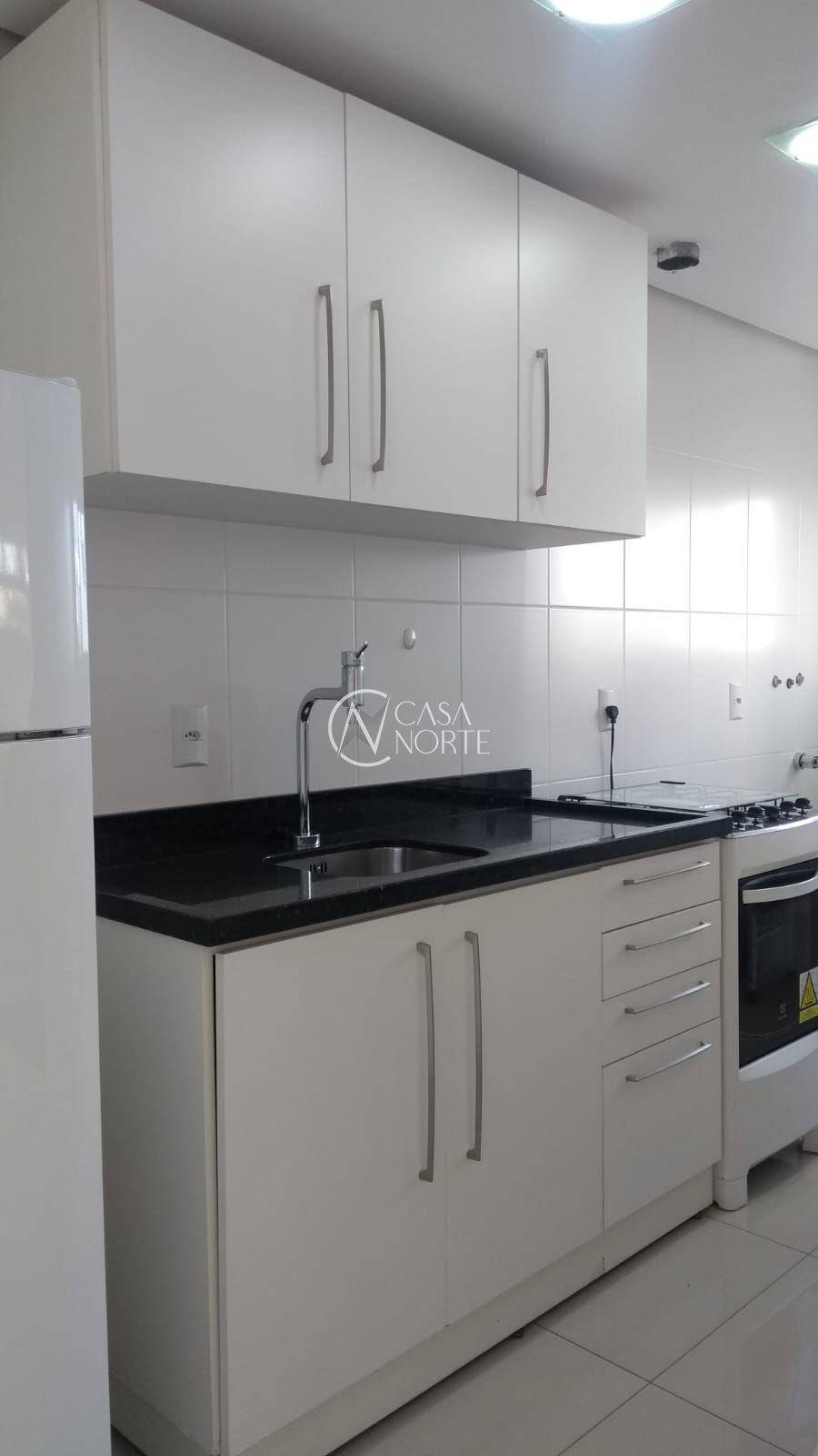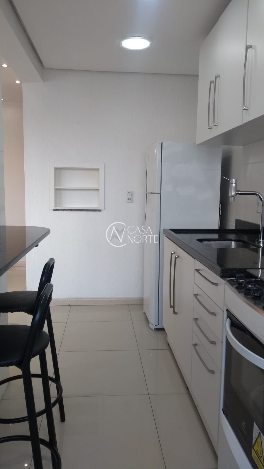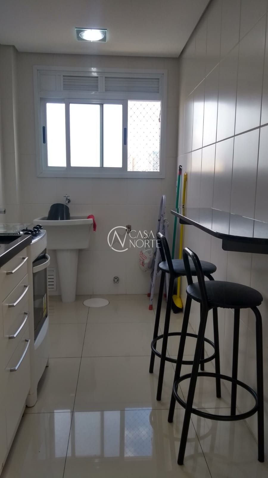 Cozinha equipada com churrasqueira, perfeita para momentos de lazer e descontração, além de área de serviço funcional.
