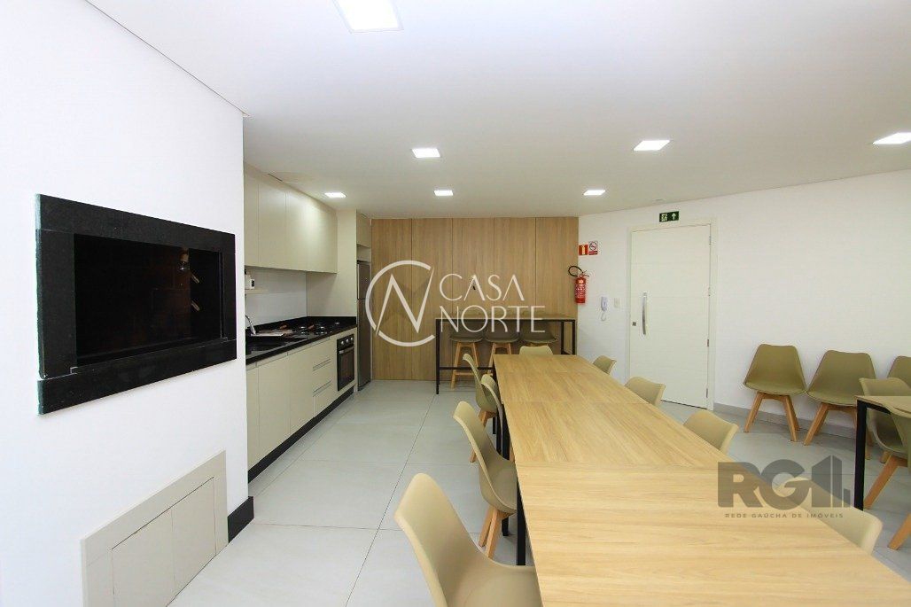 Apartamento novo para comprar com 53m² privativos, 1 Dormitório de ótimo tamanho com persianas em 2 folhas e excelente padrão de esquadrias nas janelas, living com piso porcelanato Portobello (90cm x 90cm), cozinha americana com churrasqueira, sanca em gesso pronta com esperas para iluminação e split em todos os ambientes, banheiro social e água quente em todas as torneiras. 1 vaga de garagem coberta e escriturada.