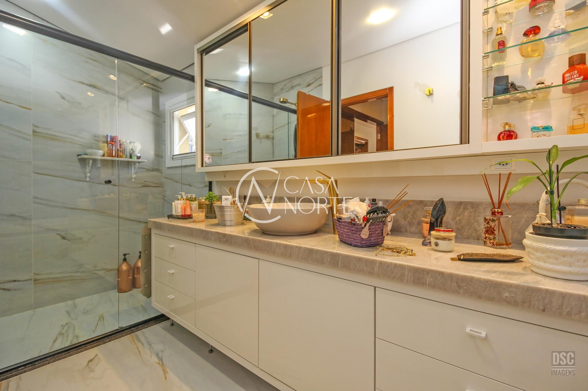 No andar superior, 3 grandes suítes, sendo uma master com closet e todas com janelas em pvc automatizadas. Muito iluminada e ensolarada.