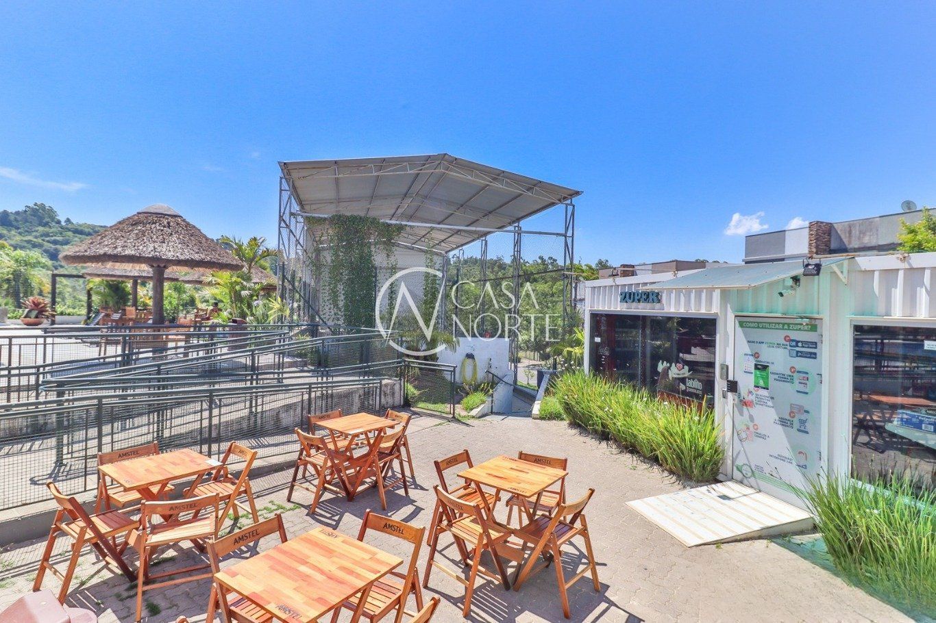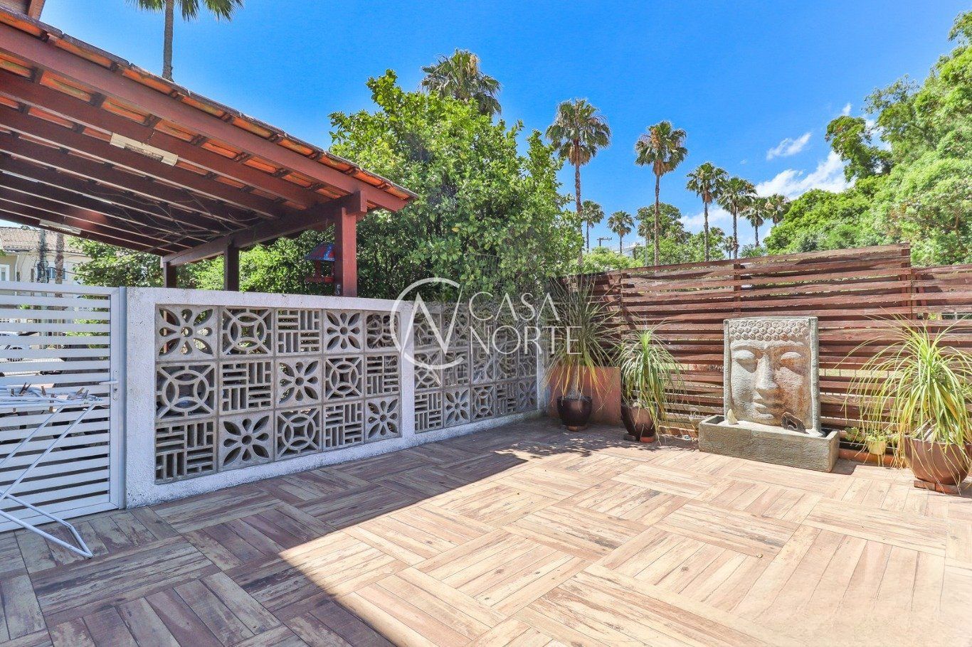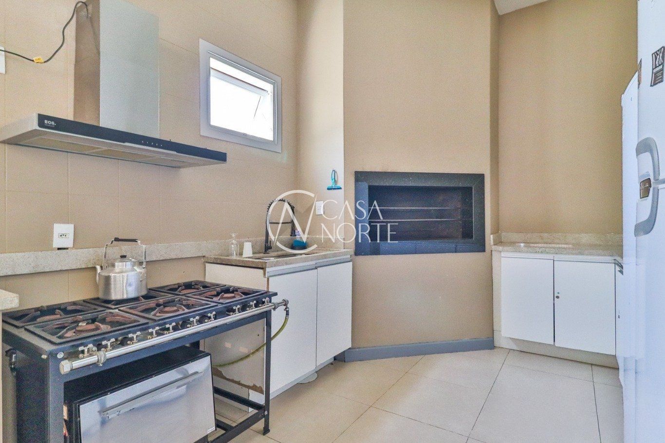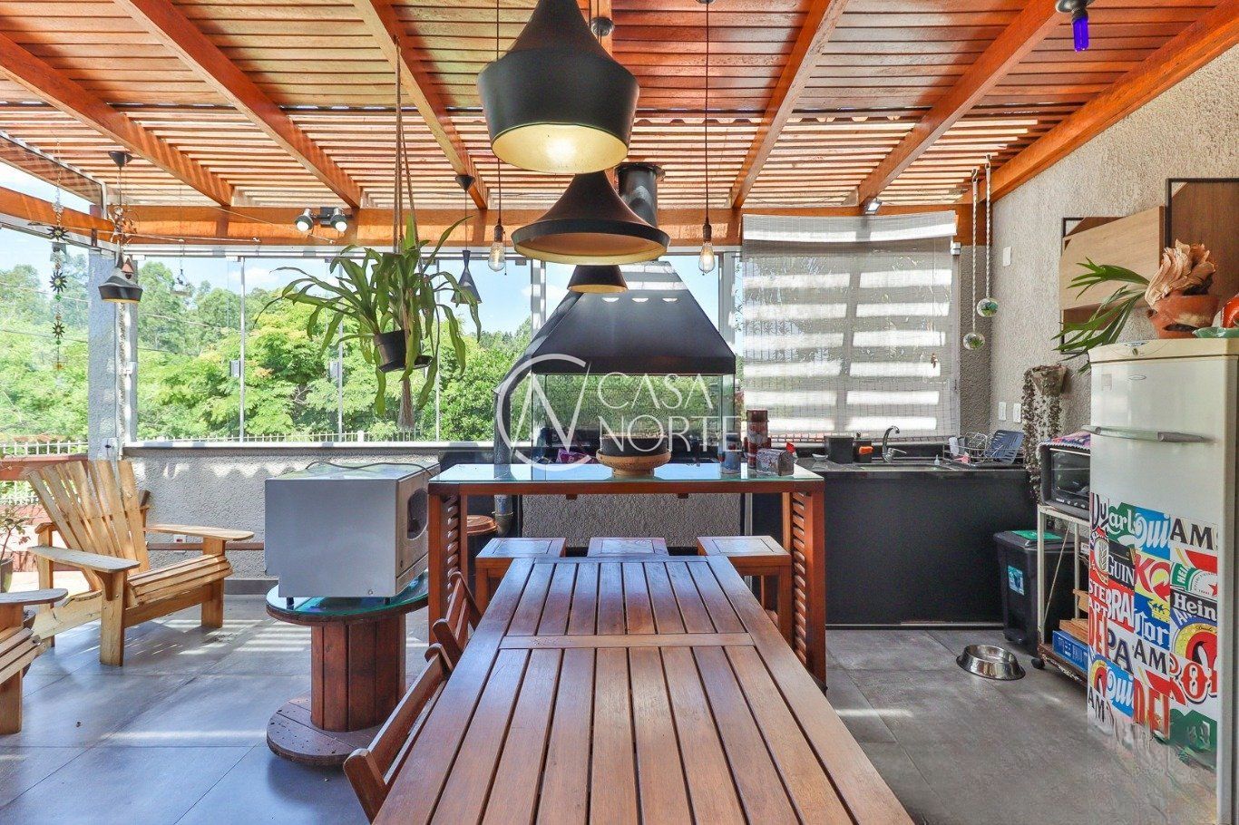 Possui vaga para até 3 carros, espaço gourmet com churrasqueira e fogão a lenha, além de amplo pátio com possibilidade de piscina privativa.