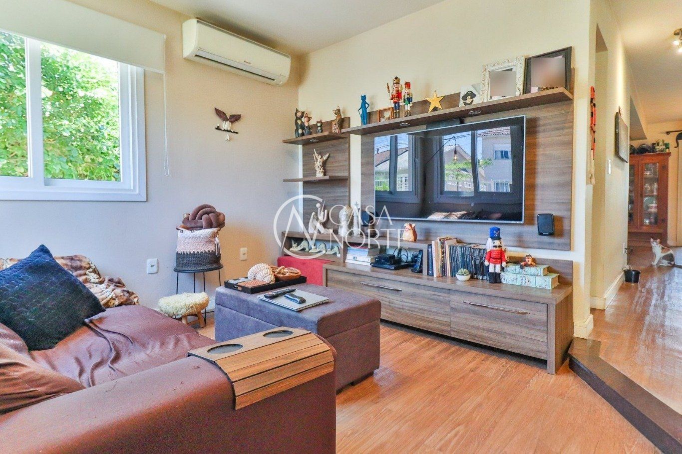 Sala ampla com lareira a gás, cozinha americana integrada, lavabo e banheiro social. Imóvel com energia solar. Terceiro pavimento com espaço versátil, podendo ser utilizado como dormitório adicional ou home office.
