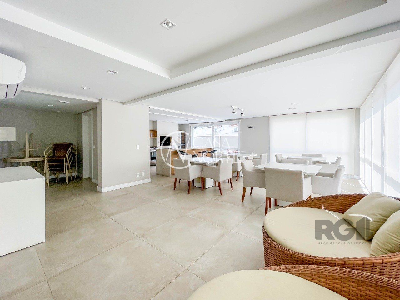 Apartamento novo de 70m², mobiliado e muito bem decorado, 2 dormitórios, sendo 1 com suíte e o outro transformado em escritório / sala de estudos, ambos com ar condicionado, assim como o living de 2 ambientes. A cozinha é planejada e equipada com armários, elétros e churrasqueira. Conta com mais a área de serviço, 1 banheiro social, 1 suíte e 1 vaga de garagem com depósito. Disposto em andar intermediário, de frente, com orientação solar Norte / Oeste.