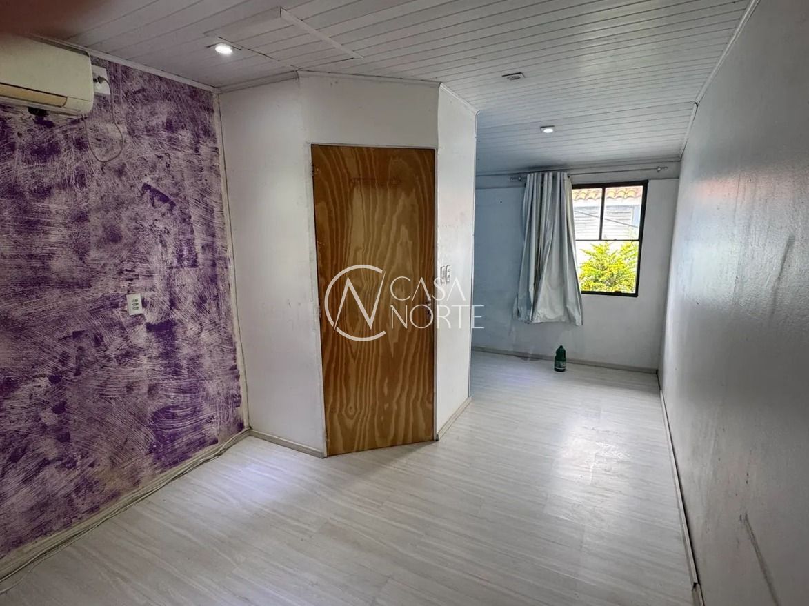 Sobrado no bairro Vila Nova, de 2 pavimentos, com 40m² privativos, desocupado. Possui no andar inferior: sala de estar, banheiro e cozinha. No andar superior possui peça ampla (podendo ser feita divisória para 2 dormitórios) com sacada com teto de vidro. Nos fundos pequeno pátio fechado. Piso laminado. Condomínio com salão de festas, churrasqueira e porteiro eletrônico. Possui instalação de 127 e 220W. Vaga de garagem rotativa. Condomínio com interfone, portão eletrônico, monitoramento por câmeras, salão de festas com churrasqueiras. Localizado em ótima região com comércio, escolas e transporte próximos. Aceita financiamento. Agende já uma visita.