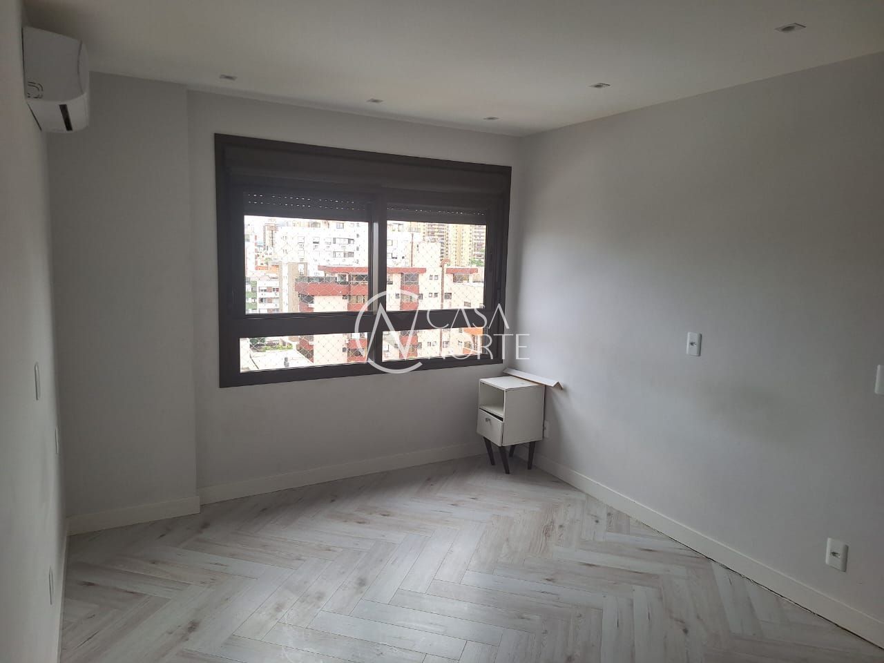 Excelente apto. Condôminio TOM MENINO DEUS, no Bairro Menino Deus com 110,59m de área privativa, de frente, com 03 dormitórios sendo: 01 suite master com split, armários espelhado sob medida ,02 dormitórios com suite americana (um banheiro entre os dois dorms.) com splits e armários espelhado sob medida , amplo living com janelões parede parede, boa claridade e vista panorâmica, cozinha americana com churrasqueira. , 0 vaga de garagem dupla, salão de festas, academia, elevador, portaria virtual. Obs. No Momento estão trocando o piso do Living para laminado).