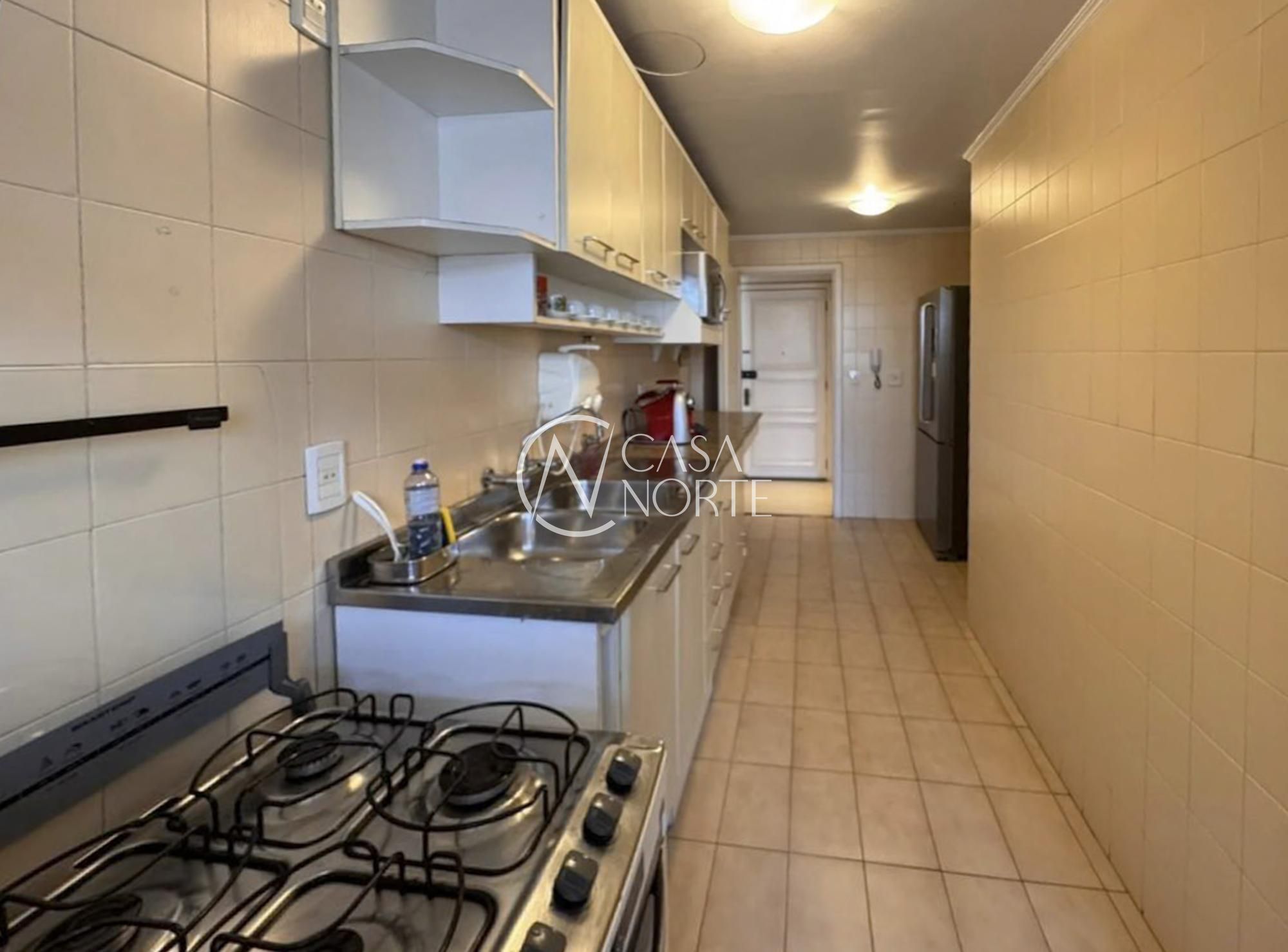 Apartamento semimobiliado com 93 m² de área privativa com 2 dormitórios, banheiro social com ventilação natural, living amplo para 2 ambientes com sacada integrada e churrasqueira, cozinha montada com área de serviço, dependência de empregada com banheiro auxiliar. Possui 1 vaga de garagem coberta.