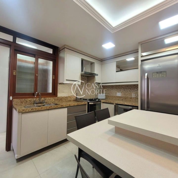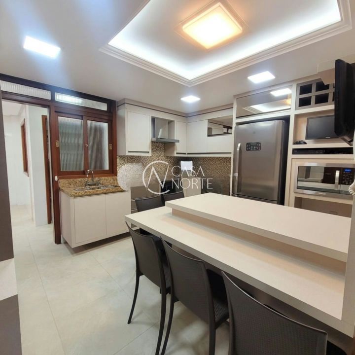 A área social é ampla e muito bem integrada, com living para 3 ambientes, sala de TV e sala de jantar, proporcionando um ambiente aconchegante e funcional. A cozinha é espaçosa e a área de serviço ampla se destaca pela vista panorâmica, trazendo iluminação e ventilação naturais.