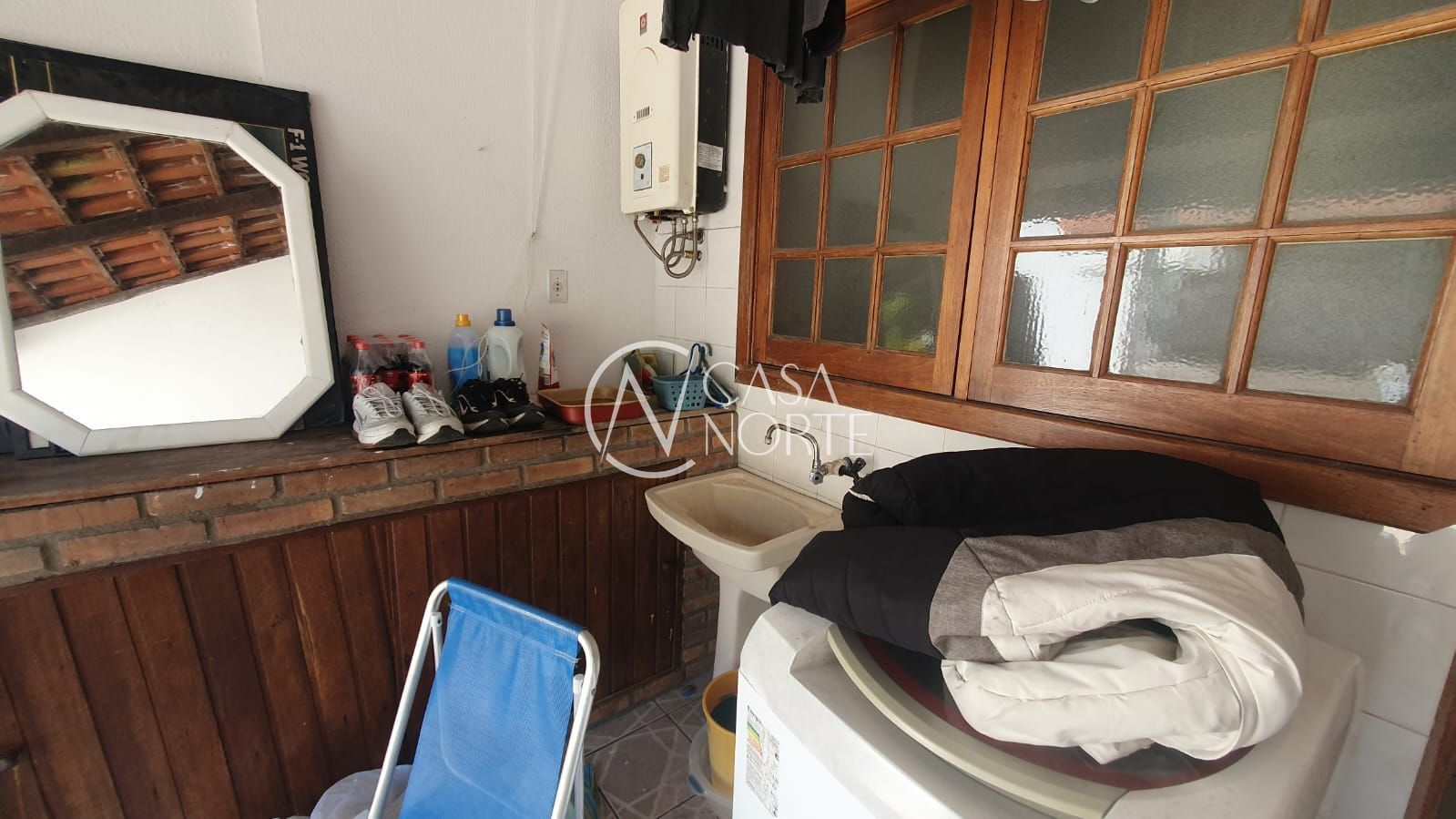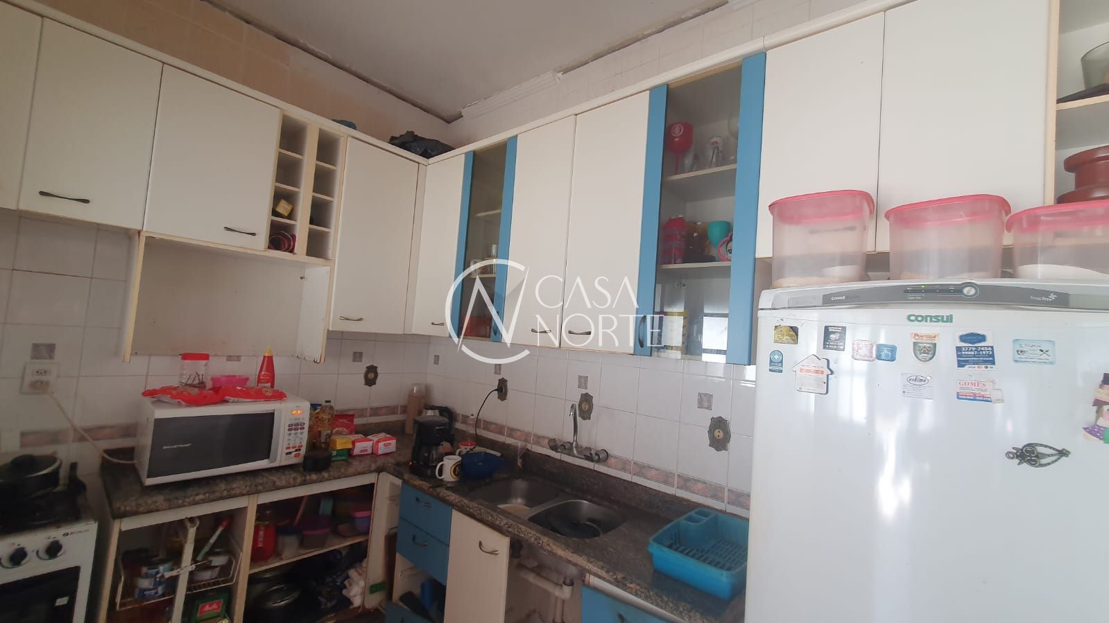 Fica ar condicionado e split, armários na cozinha e na suíte com close pequeno.