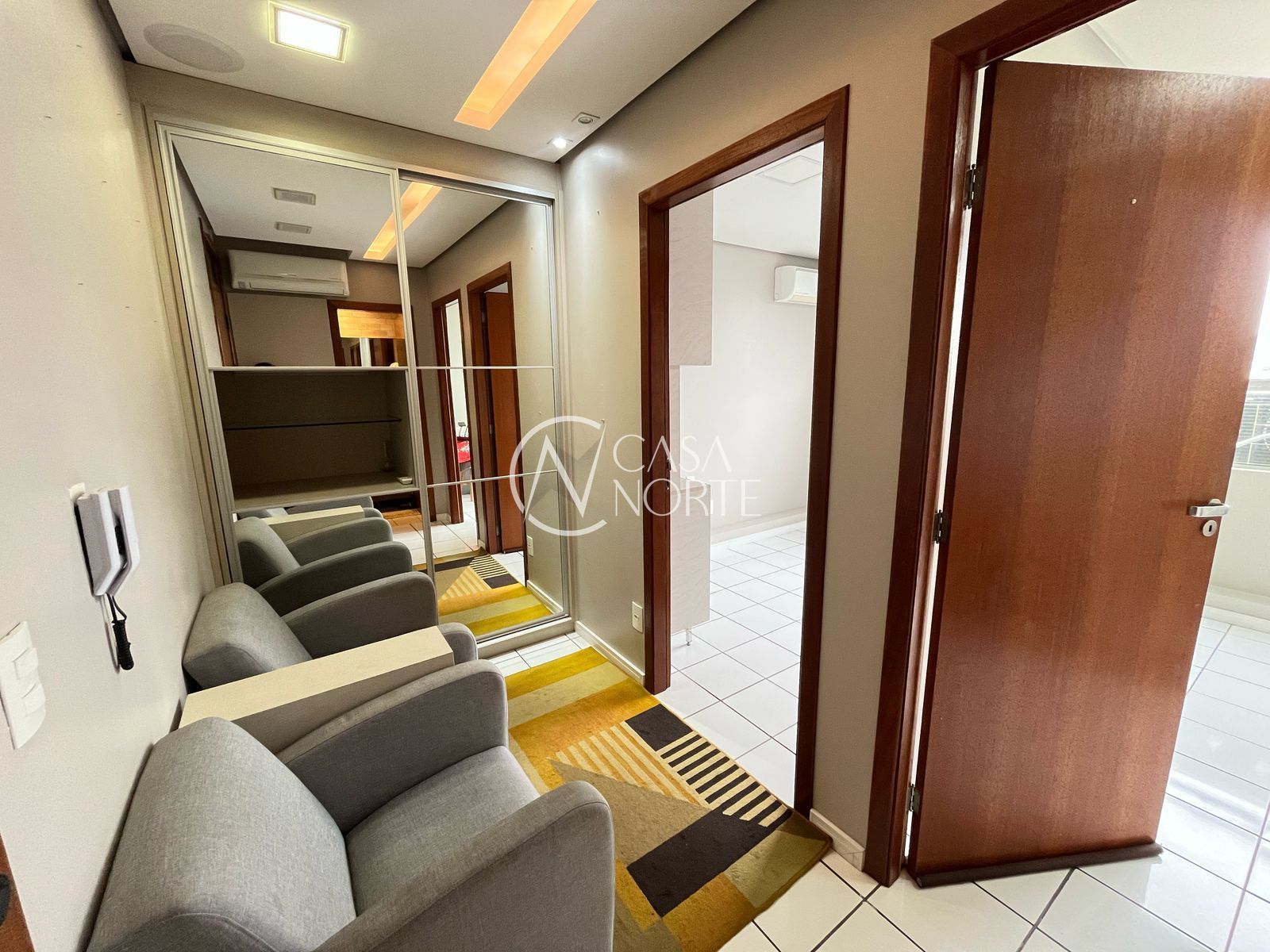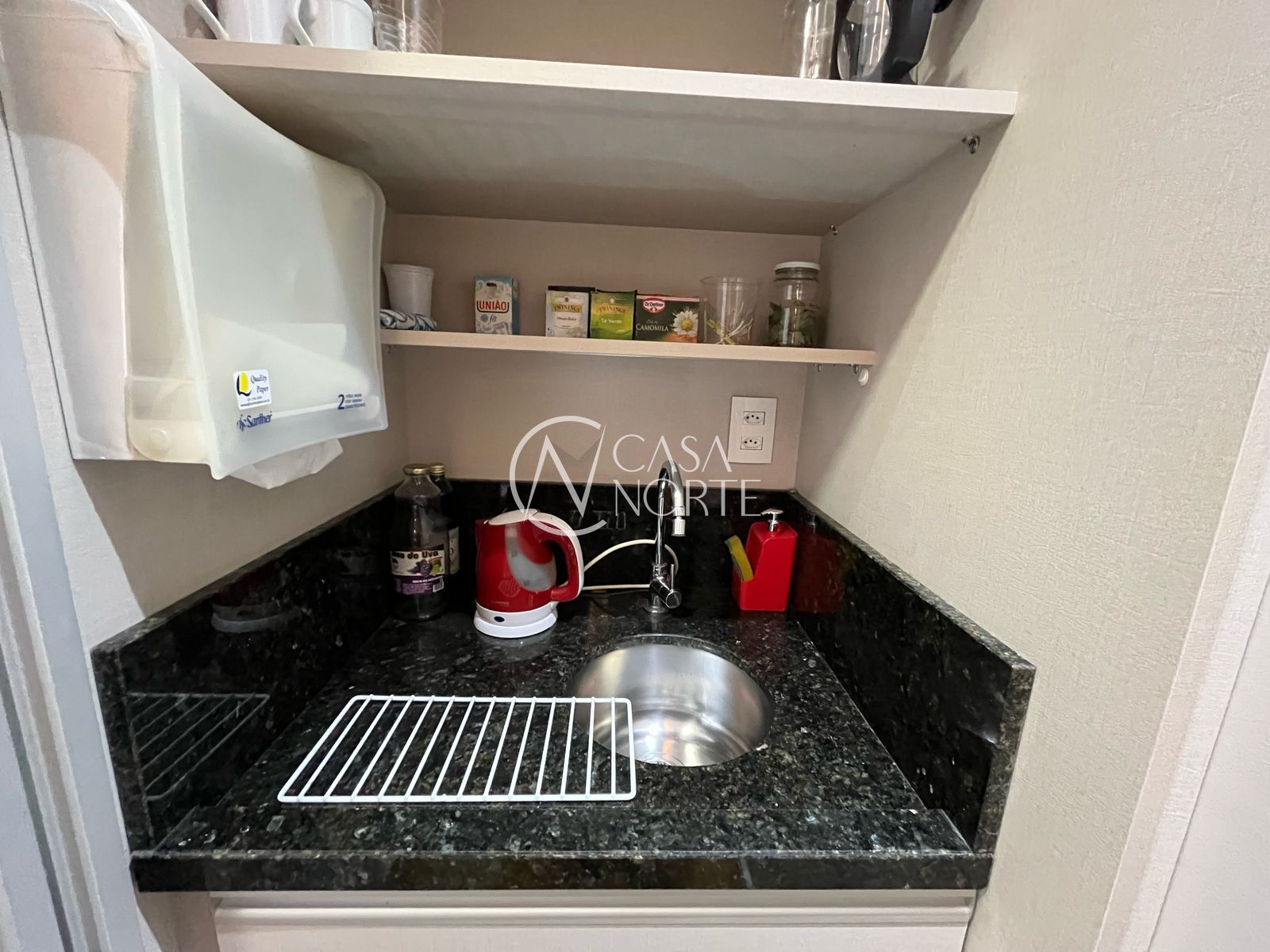 A sala já possui as divisórias para uma recepção com banheiro e para mais 2 escritórios/ salas.