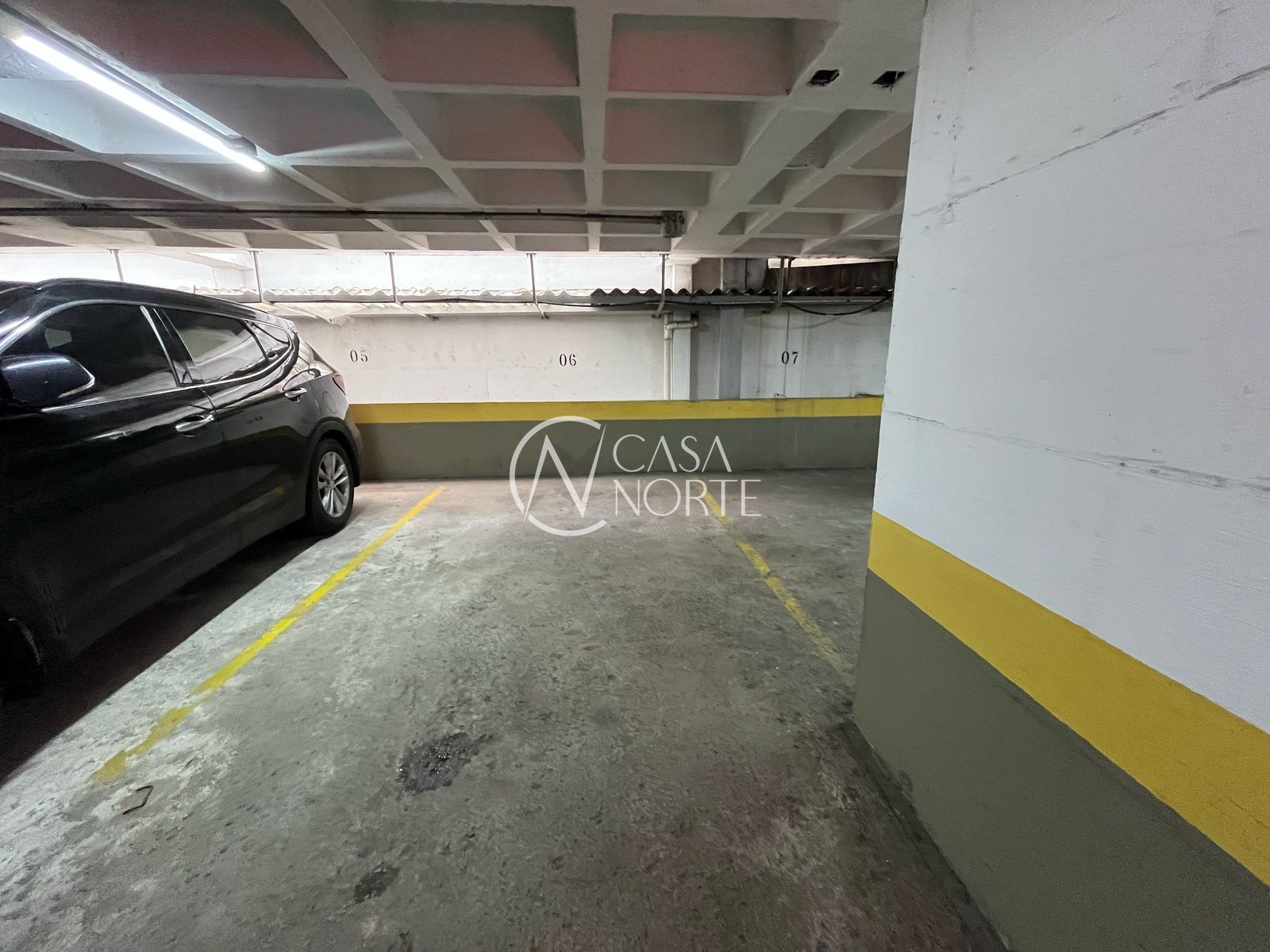 Possui um box de estacionamento coberto.