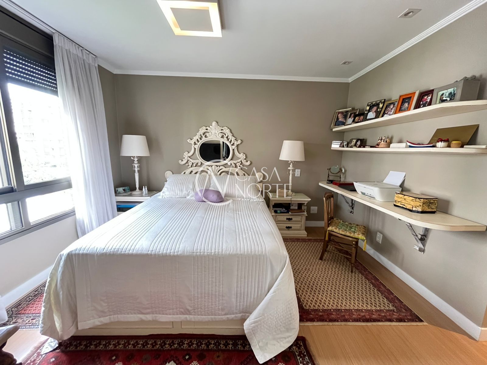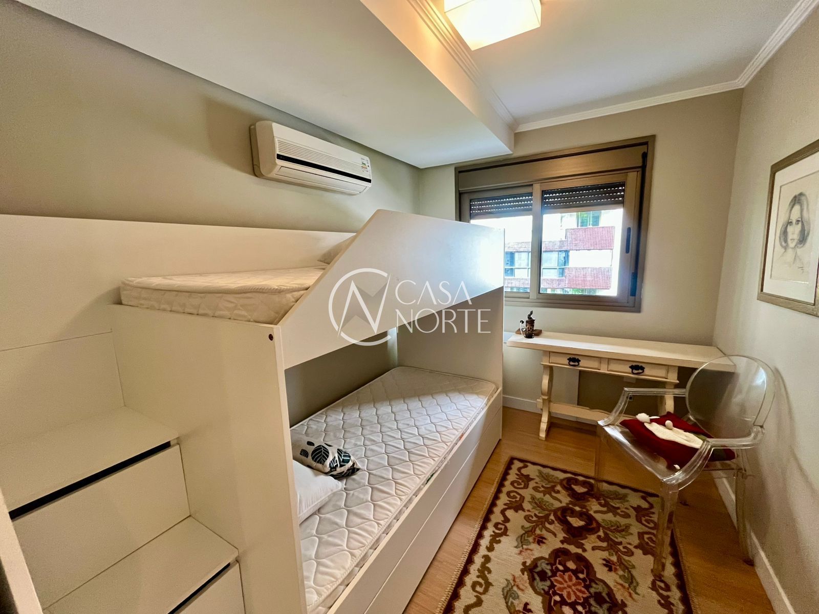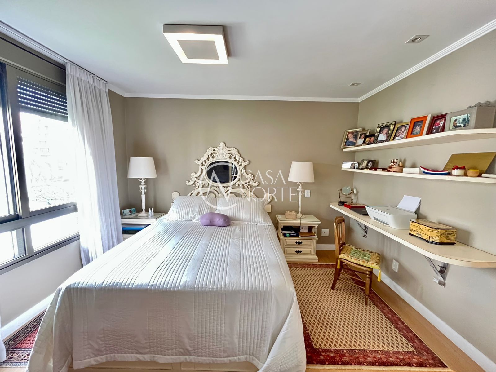 Na área íntima, há 1 dormitório amplo com bicama sob medida e 1 suíte com closet. O imóvel ainda conta com uma peça extra versátil, que pode ser utilizada como terceiro dormitório, escritório ou espaço para armários.