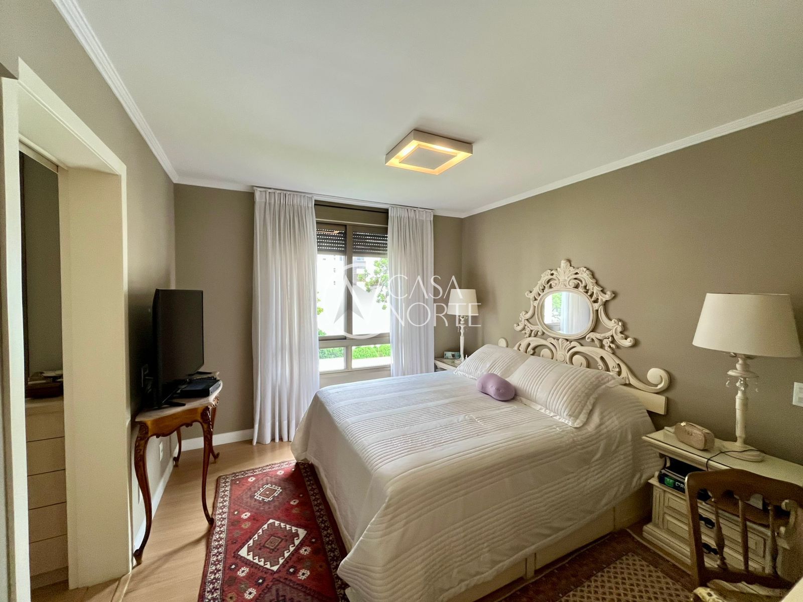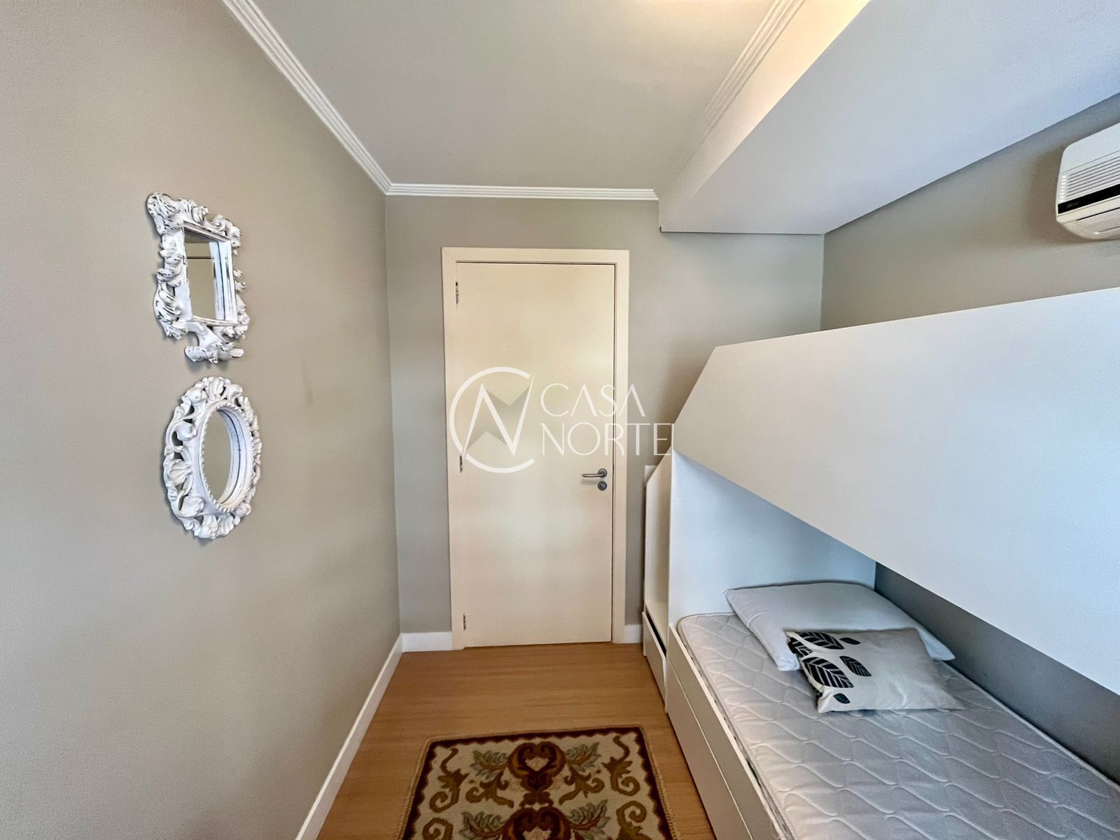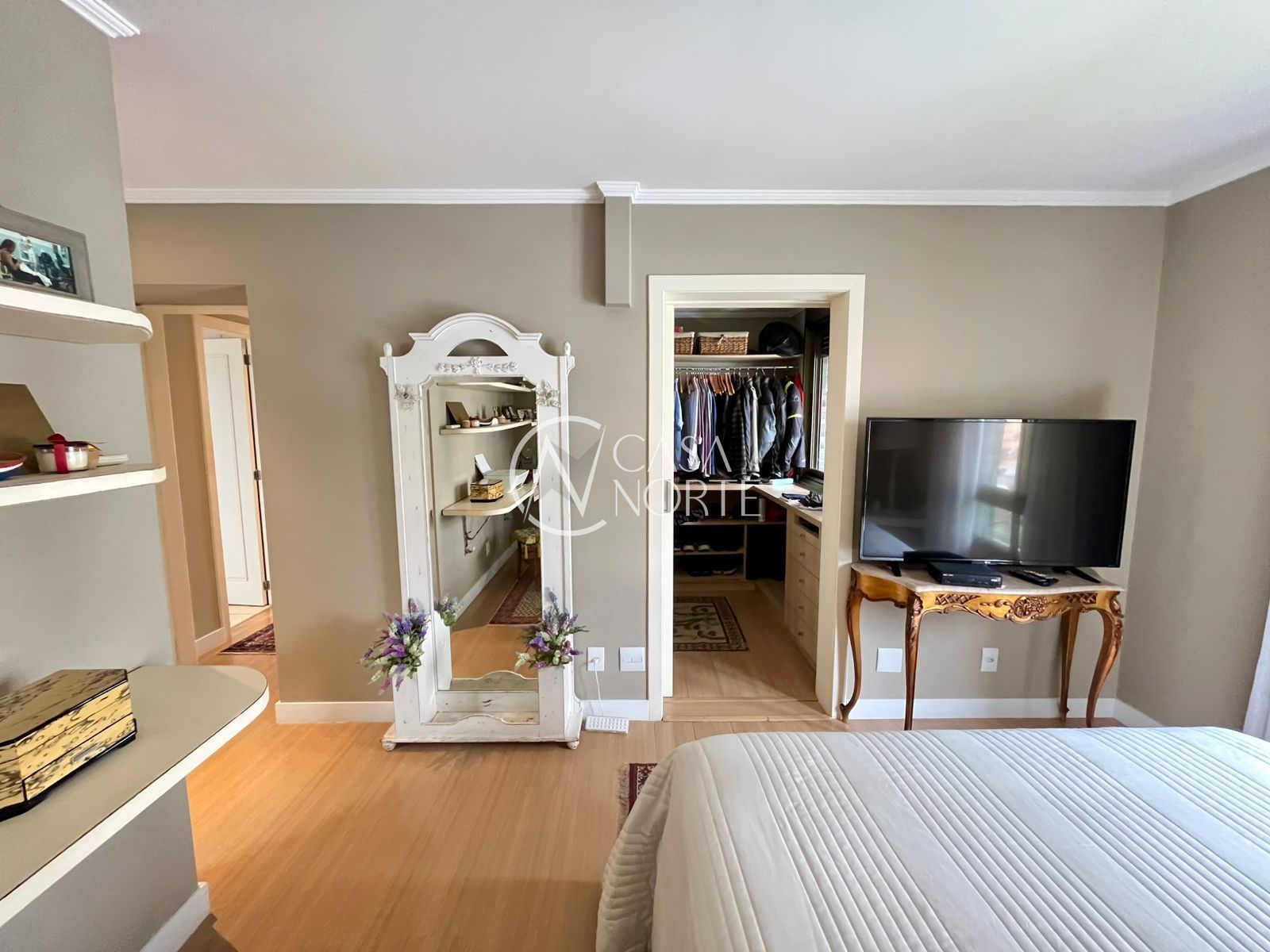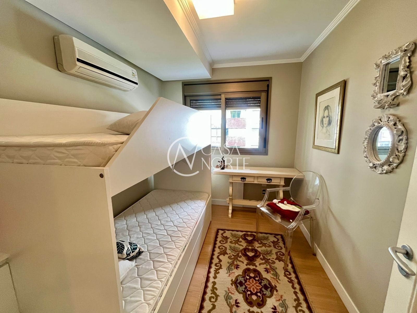 Na área íntima, há 1 dormitório amplo com bicama sob medida e 1 suíte com closet. O imóvel ainda conta com uma peça extra versátil, que pode ser utilizada como terceiro dormitório, escritório ou espaço para armários.