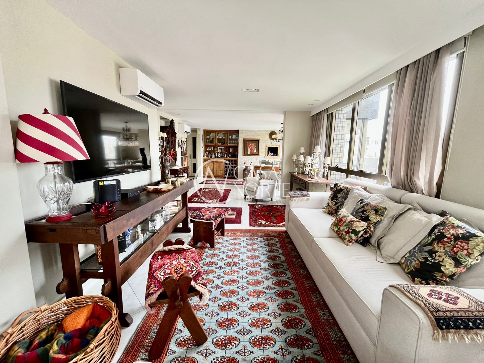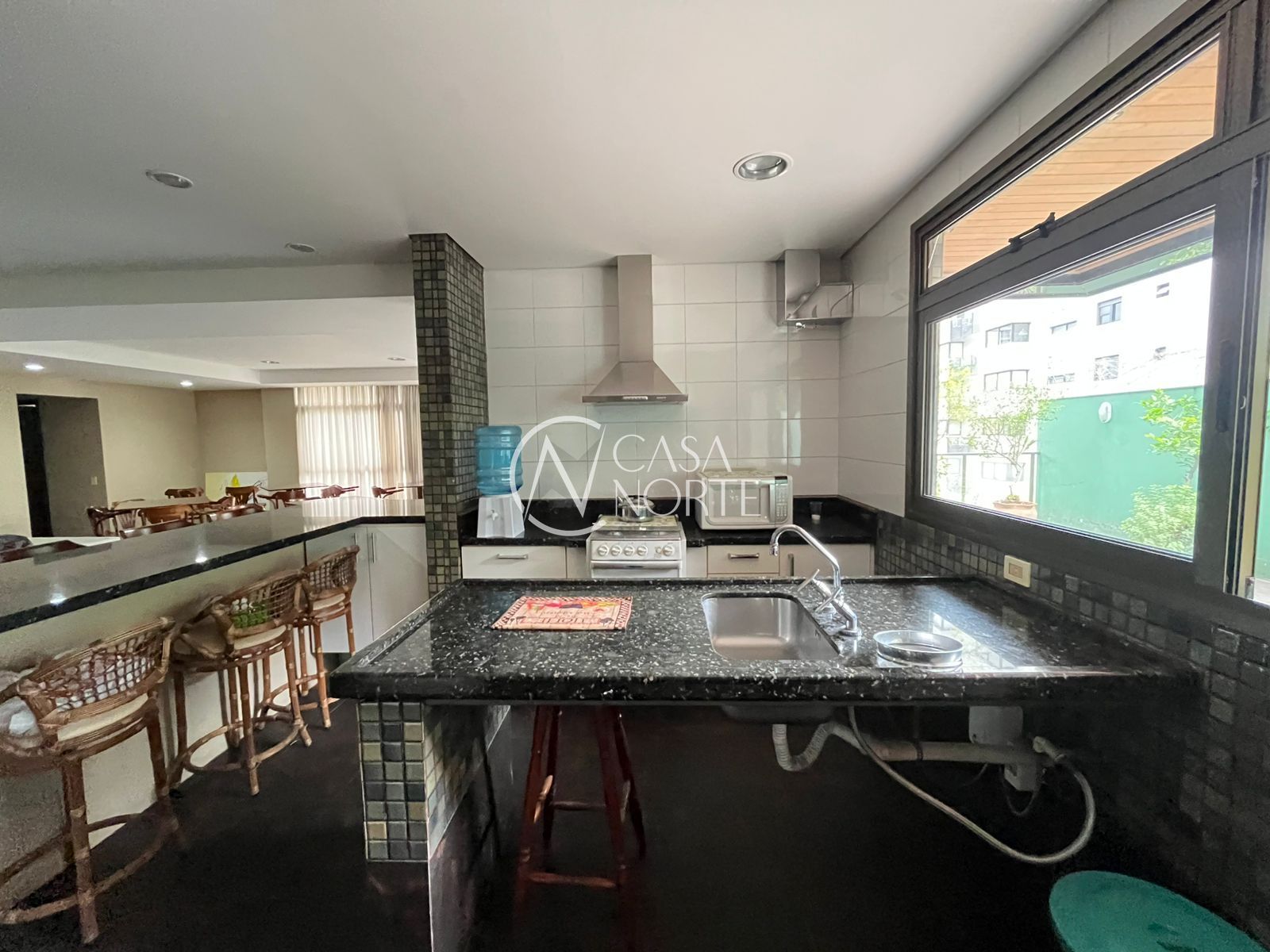 A área social é um dos destaques do imóvel: sala muito espaçosa com dois ambientes bem definidos, estar e jantar, além de churrasqueira com pia de apoio, perfeita para receber amigos e família. As janelas amplas percorrem praticamente toda a sala, trazendo muita luminosidade ao ambiente. O espaço conta ainda com 2 ar-condicionados split.