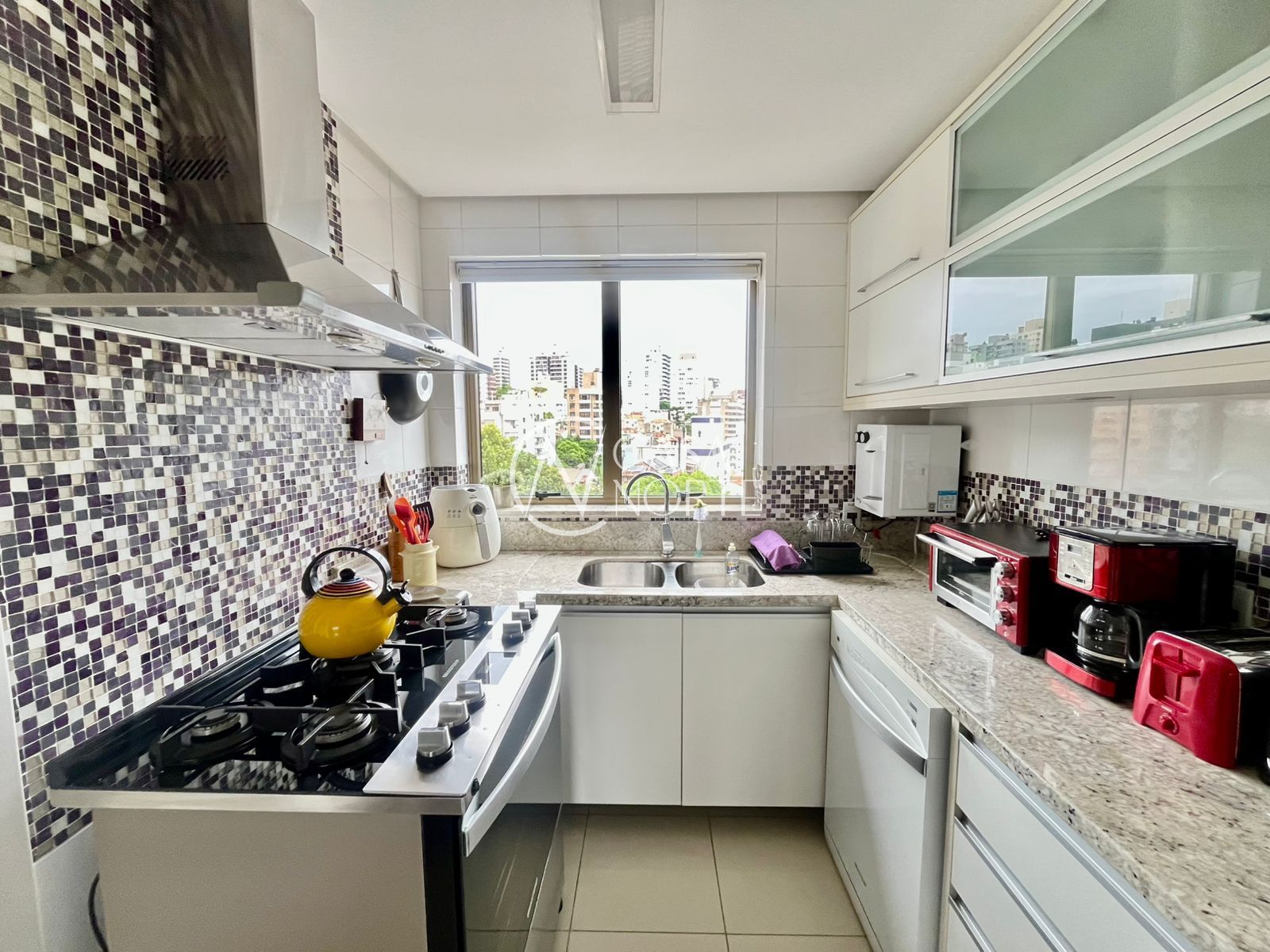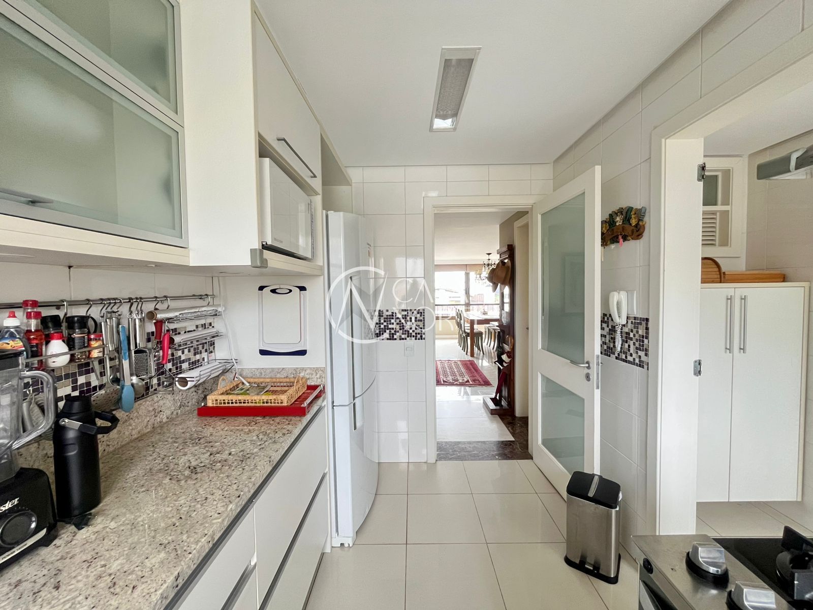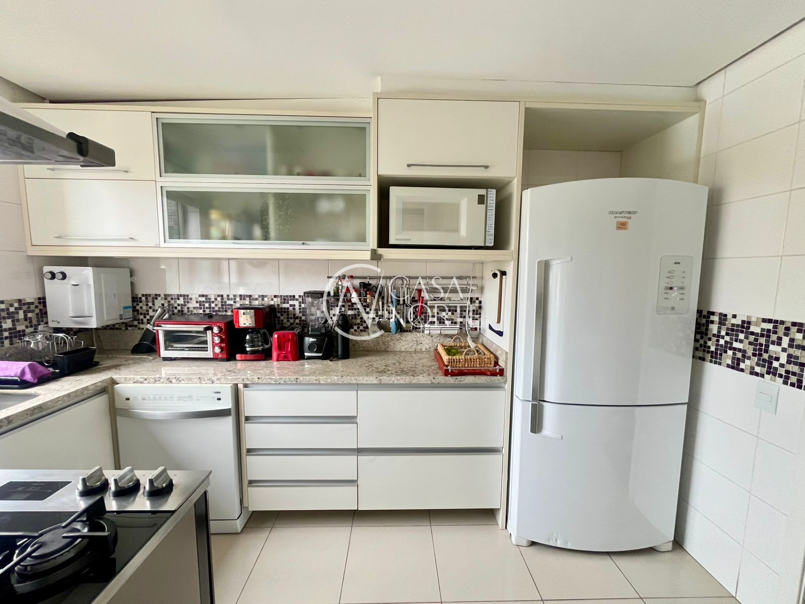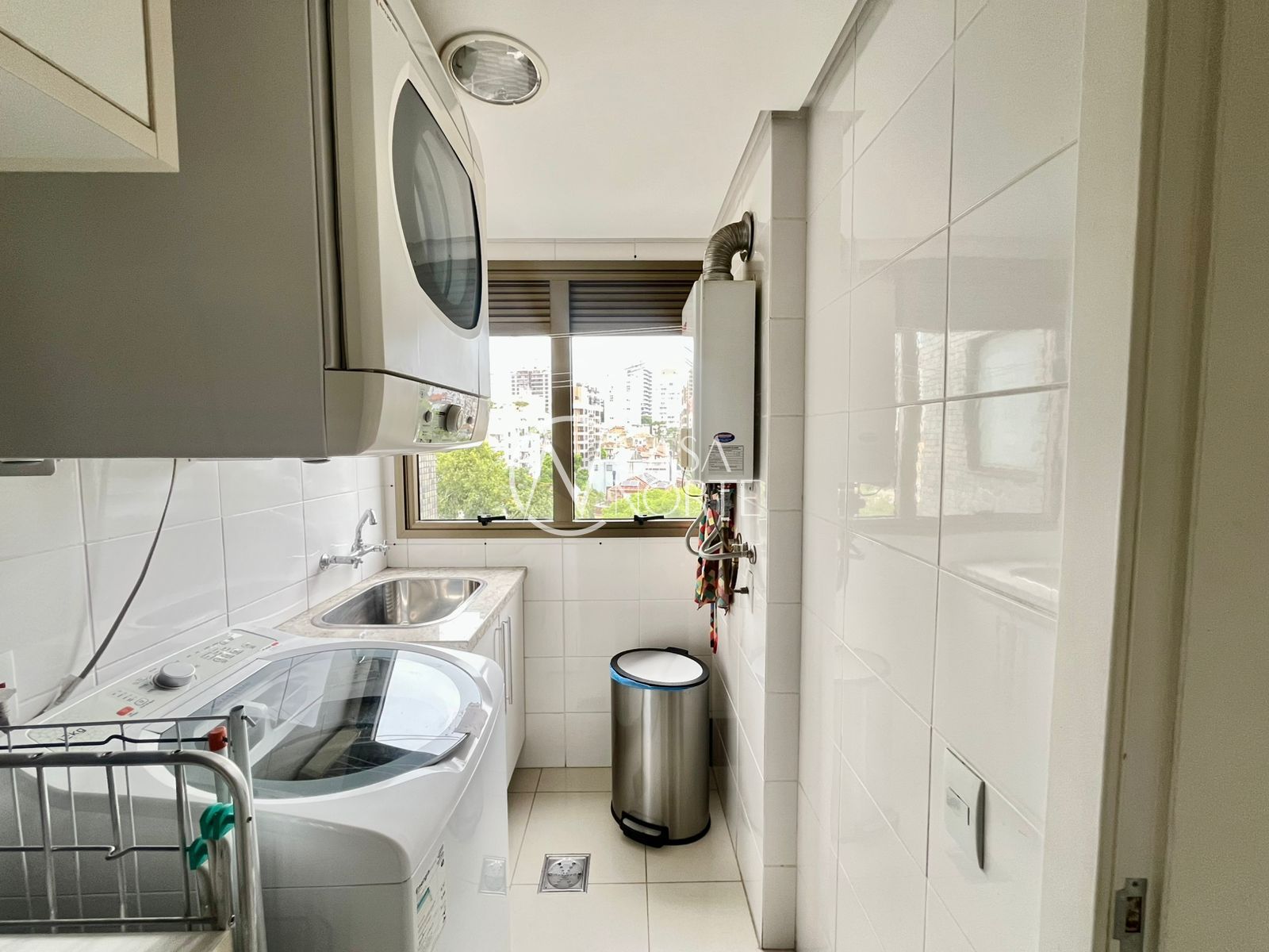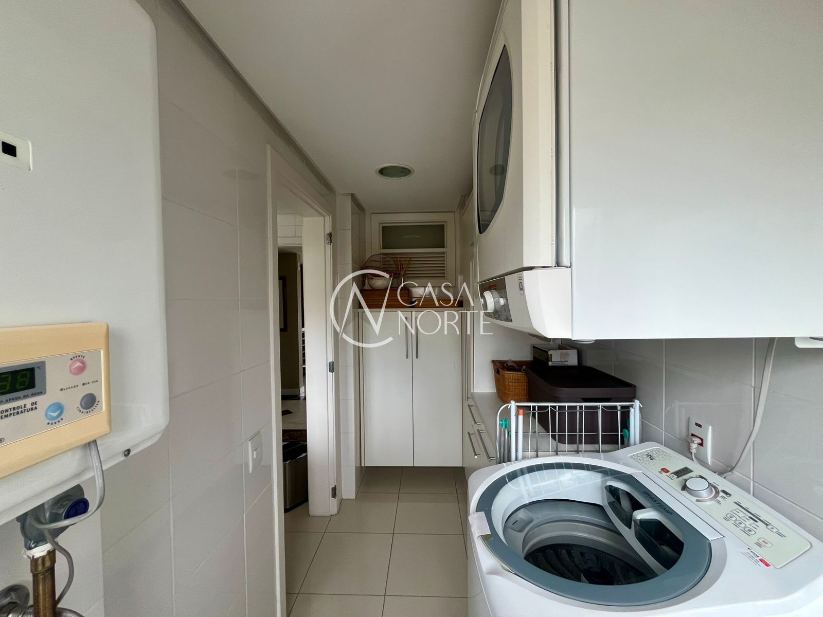 A cozinha é ampla e funcional, equipada com móveis sob medida. A lavanderia é separada e espaçosa, com área para máquinas, varal e junker.